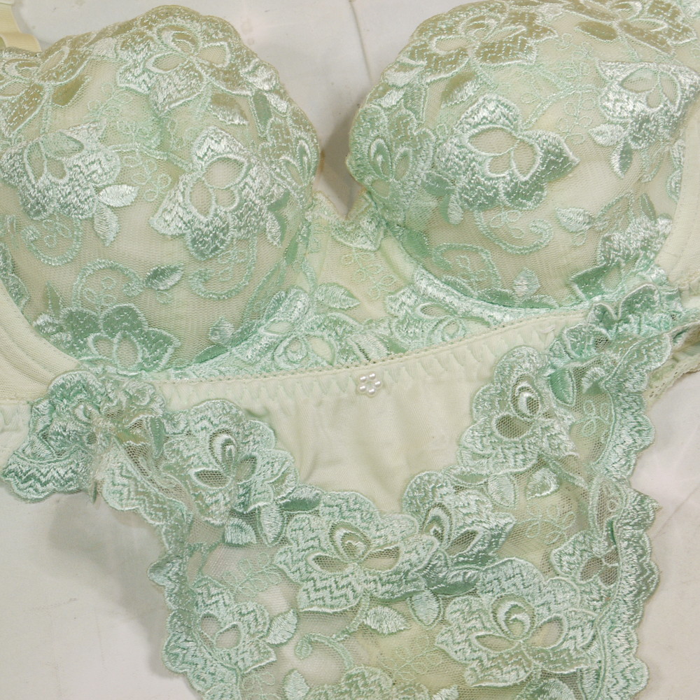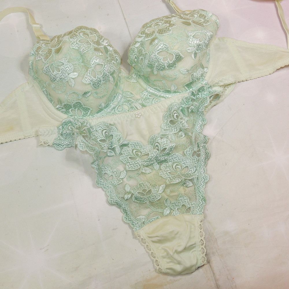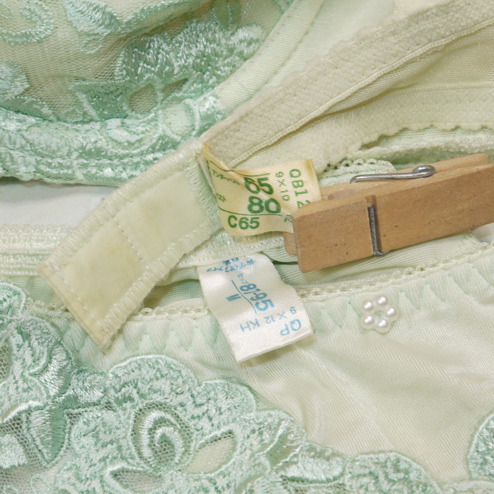 【Cランク/BK43】スタディファイブ 70G:C65*80 Mサイズ ★ 清楚感が上がるライトグリーン×睡蓮風刺繍 T PBセット