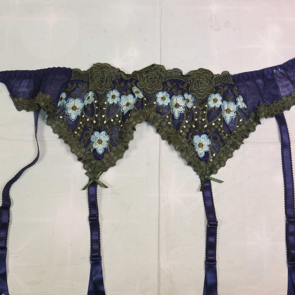 【ABランク/未使用?】スタディファイブ 50G:Mサイズ ★ 高級感むんむんのネイビー×可愛いレトロ花 ガーターベルト