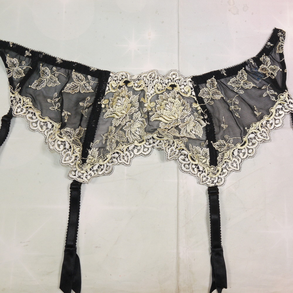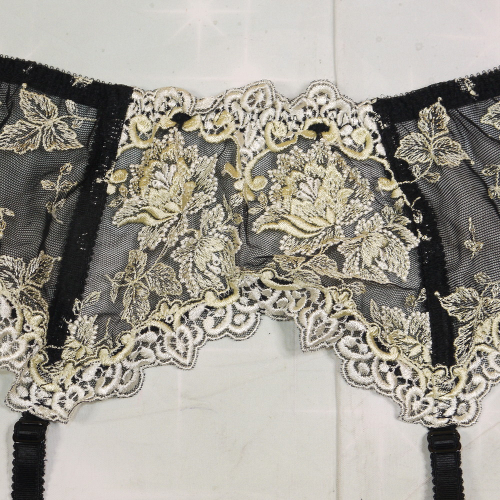 【ABランク/未使用?】スタディファイブ 50G:Mサイズ ★ 妖艶香る黒×金花レース刺繍 ガーターベルト