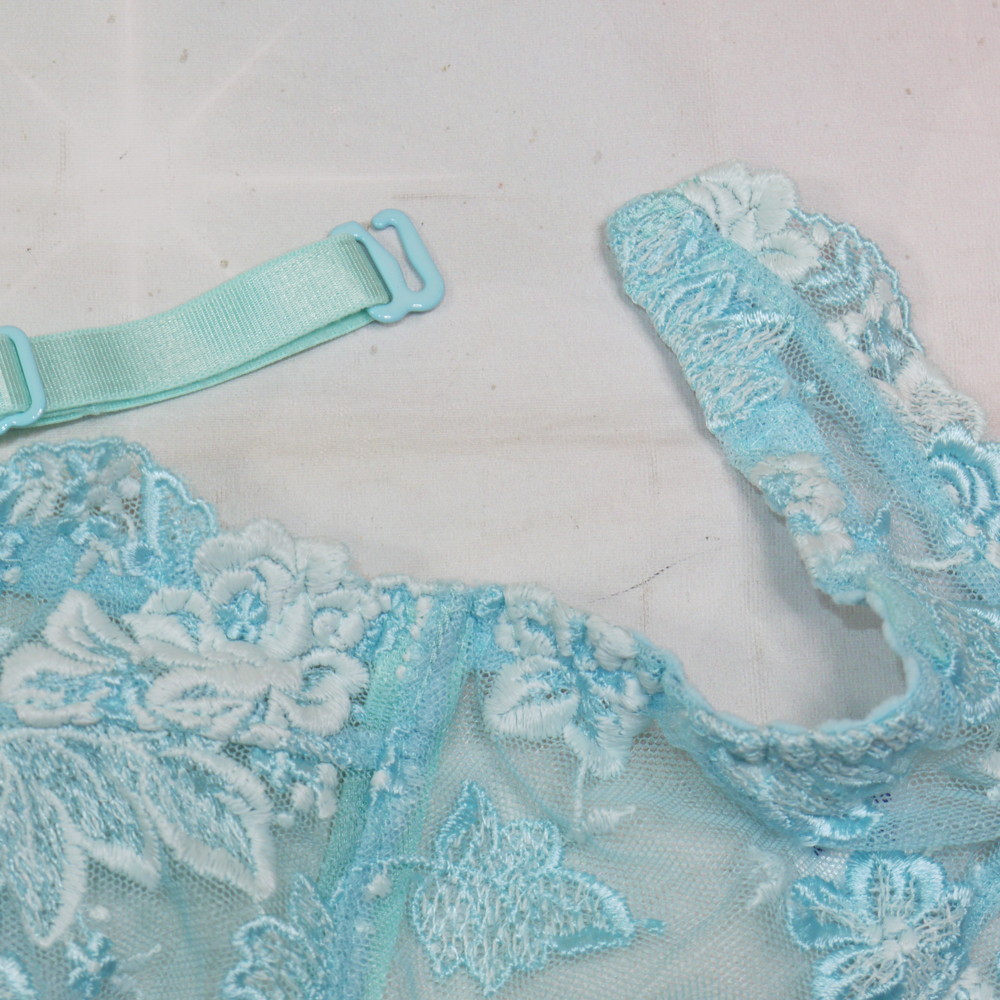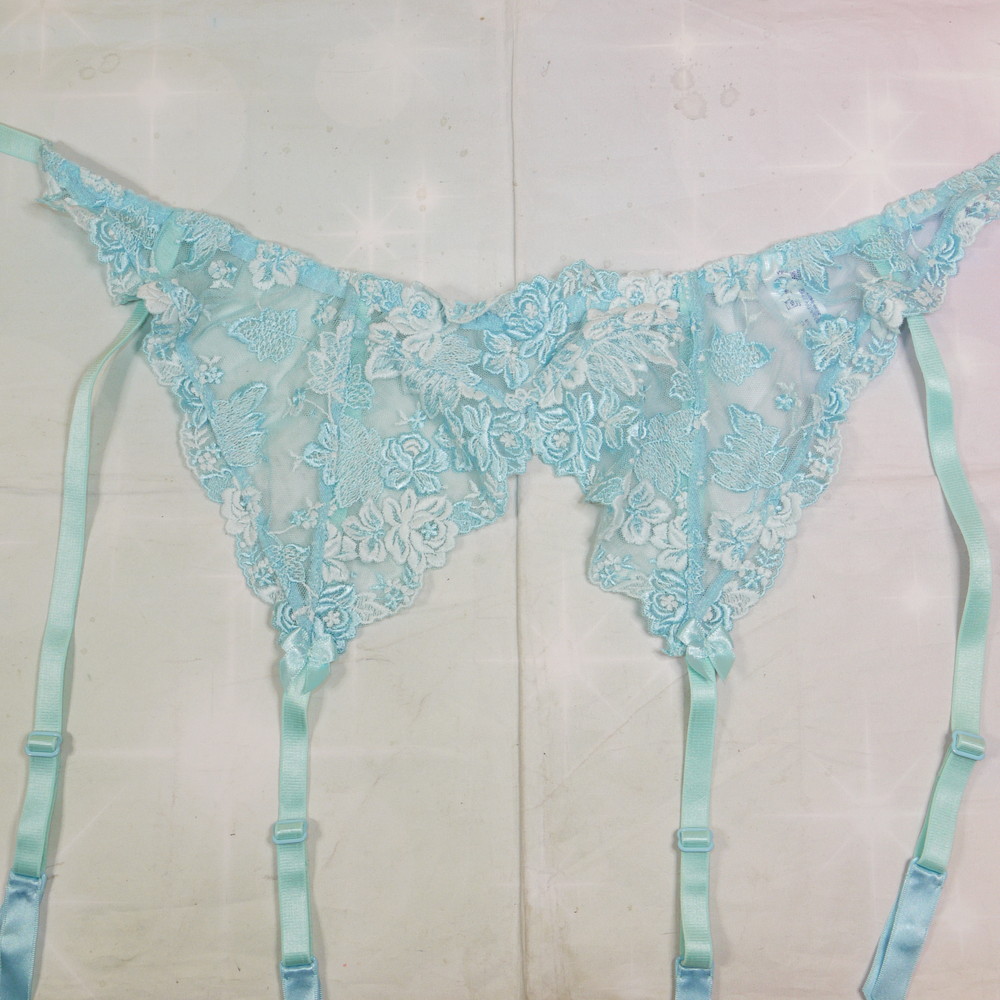 【Bランク/新古美品】スタディファイブ 10G:Mサイズ ★ 清楚感が凄い水色×レトロ薔薇 ガーターベルト