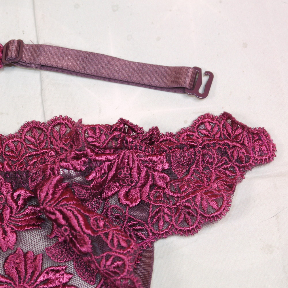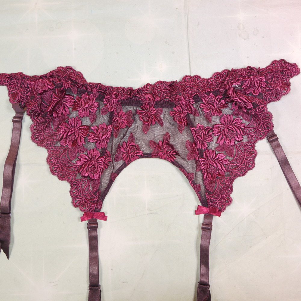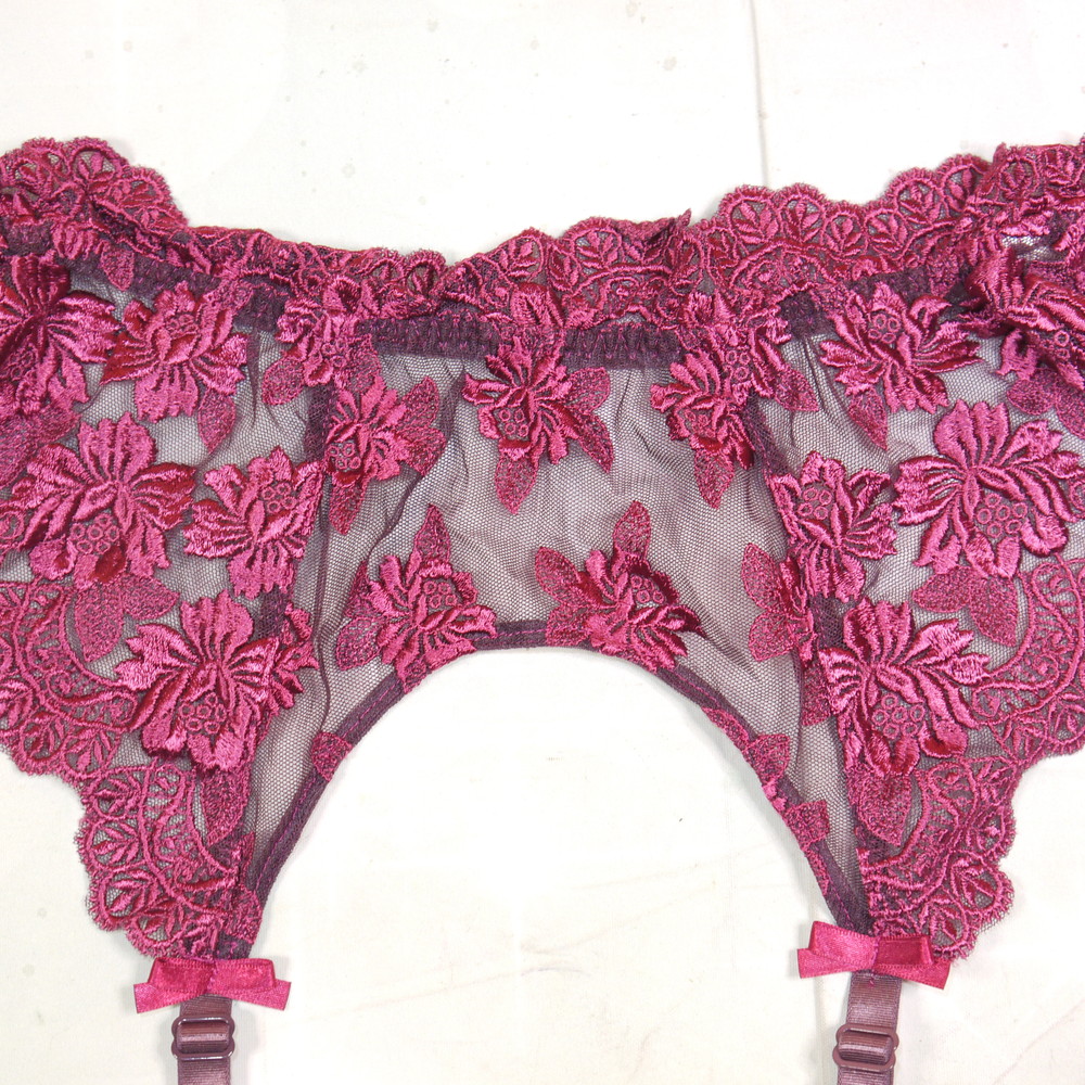 【Bランク/新古美品】スタディファイブ 20G:Mサイズ ★ 妖艶紫×花刺繍 レトロ 美魔女ガーターベルト