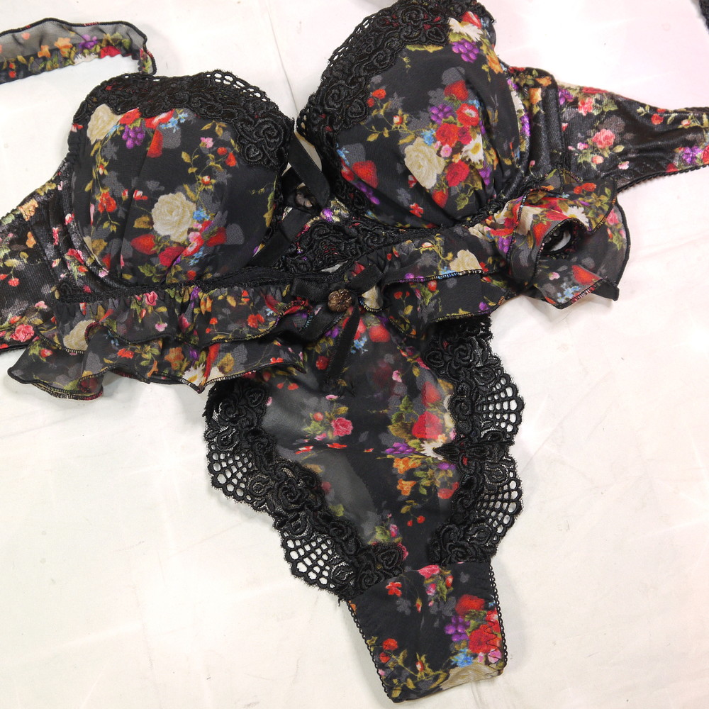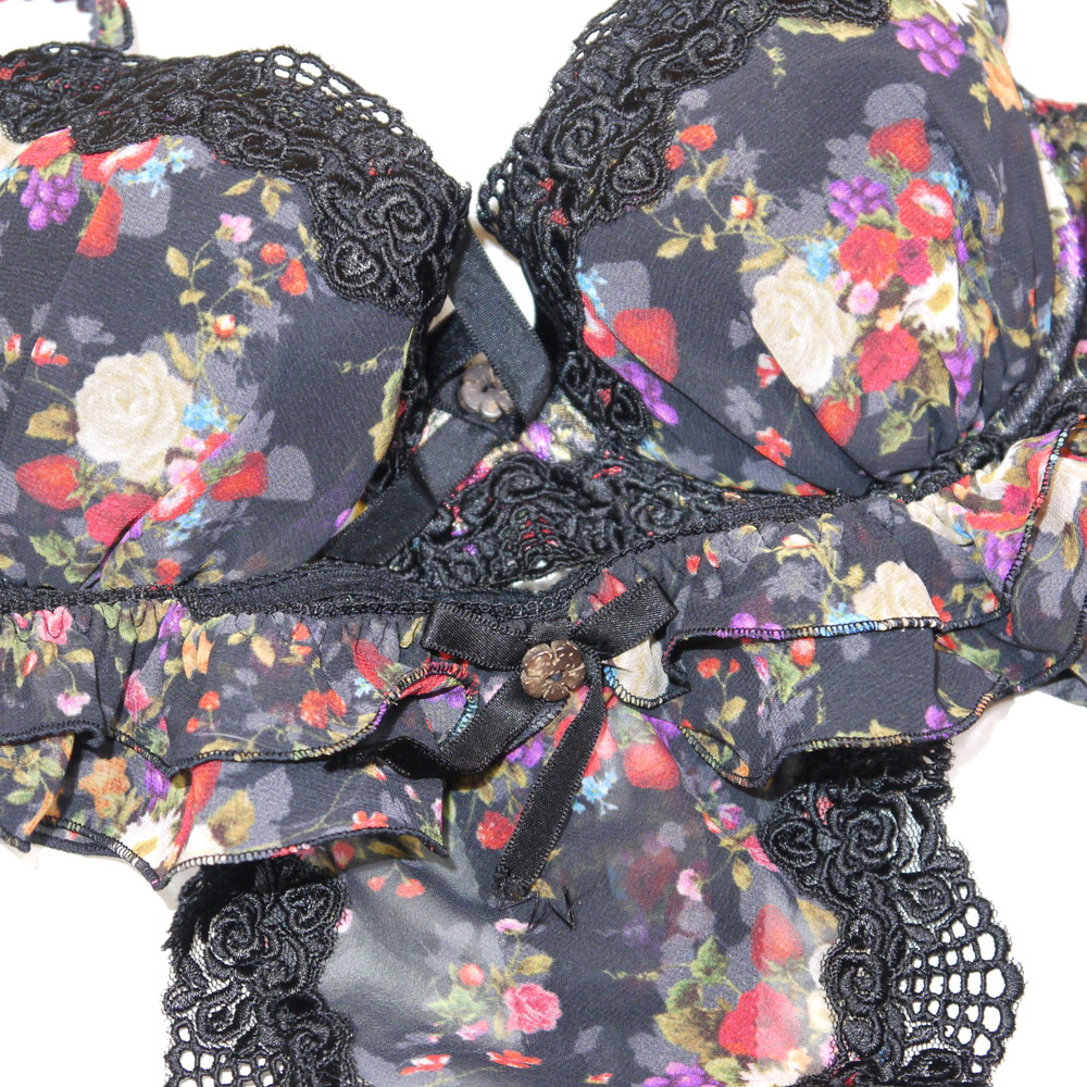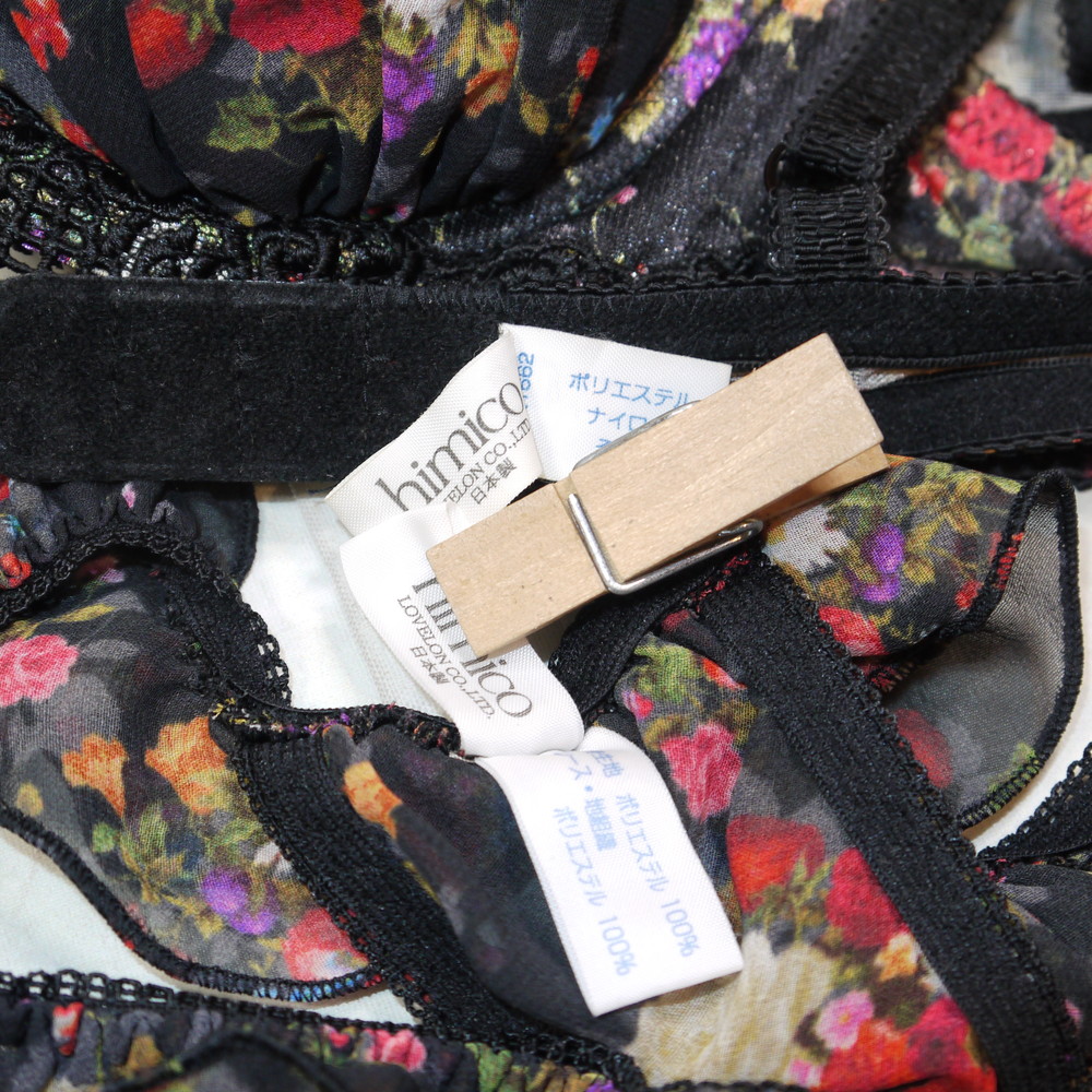 【Bランク/新古美品】himico:C65*80 Mサイズ ★ 大人エレガンスな黒×薔薇ブーケ フリル T PBセット