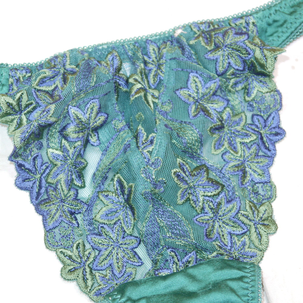 【BCランク/K43-?】スタディオファイブ:Mサイズ ★ エレガンスなグリーン×楓風刺繍 Tバック