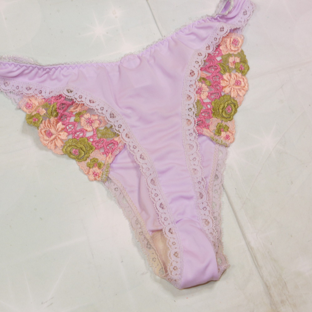 【Cランク/K43+】スタディオファイブ:Mサイズ ★ 高級感と和を感じる紫×花刺繍 Tショーツ