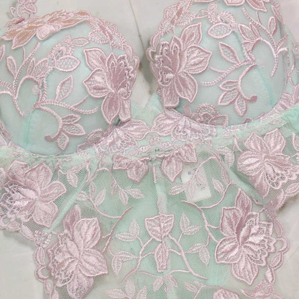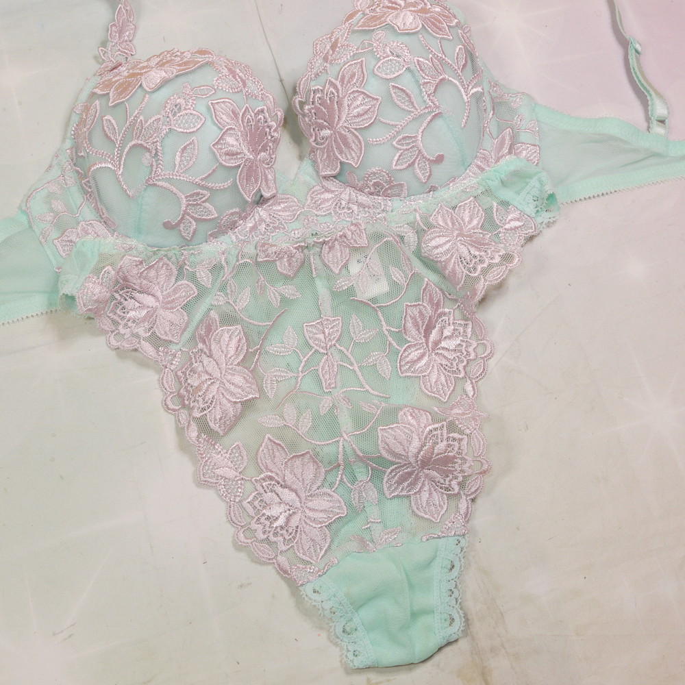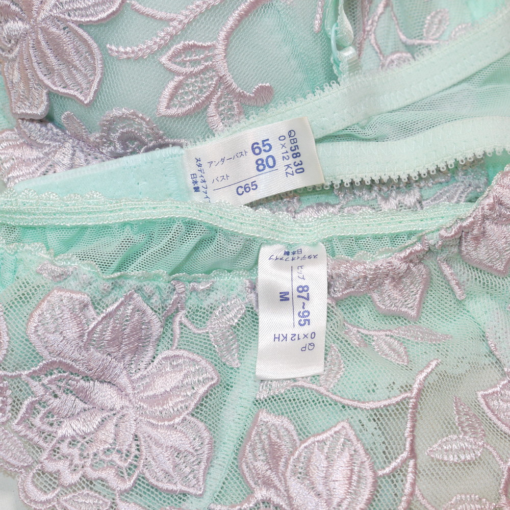 【BCランク/K43-】スタディファイブ 30G:C65*80 Mサイズ ★ お姉様・若妻感が上がるミント×睡蓮風刺繍 ランジェ T PBセット