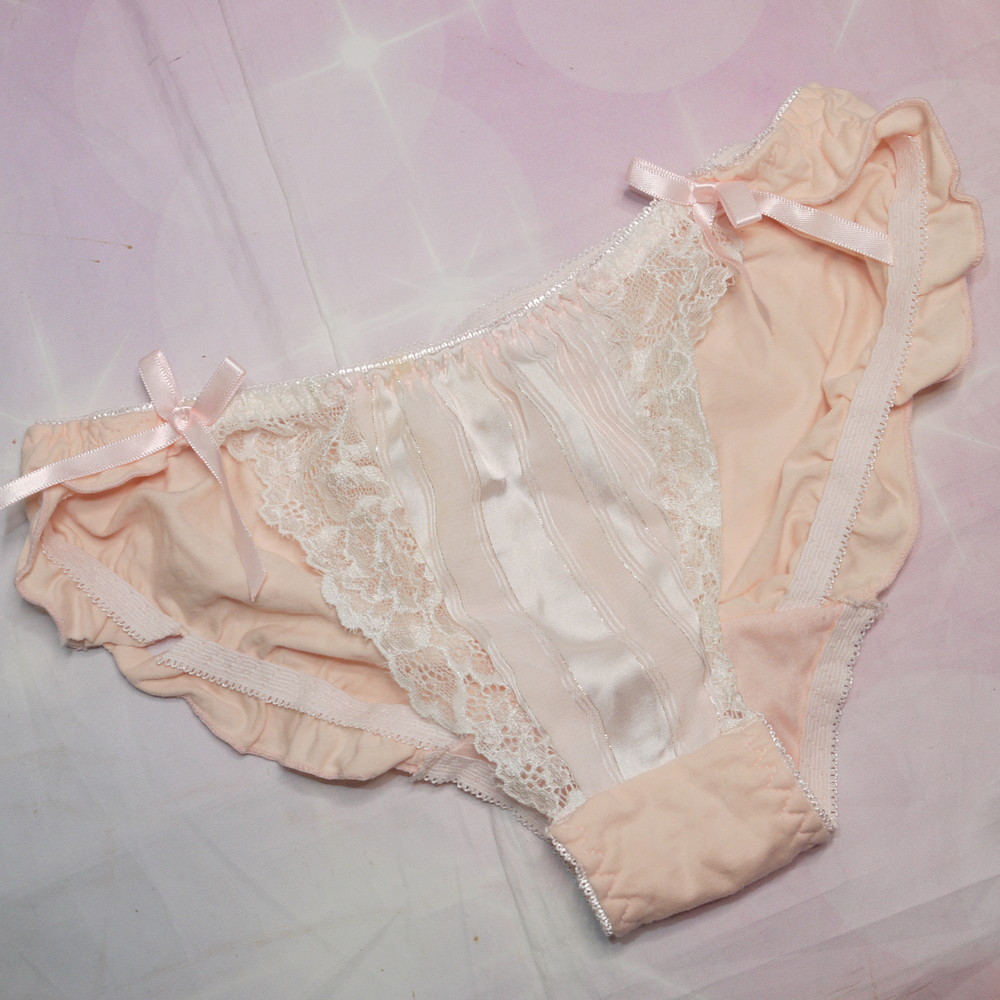 【Cランク/43-】:MLサイズ程 ★ サーモン×ストライプ ロリっと可愛いパンティ JCJK系P