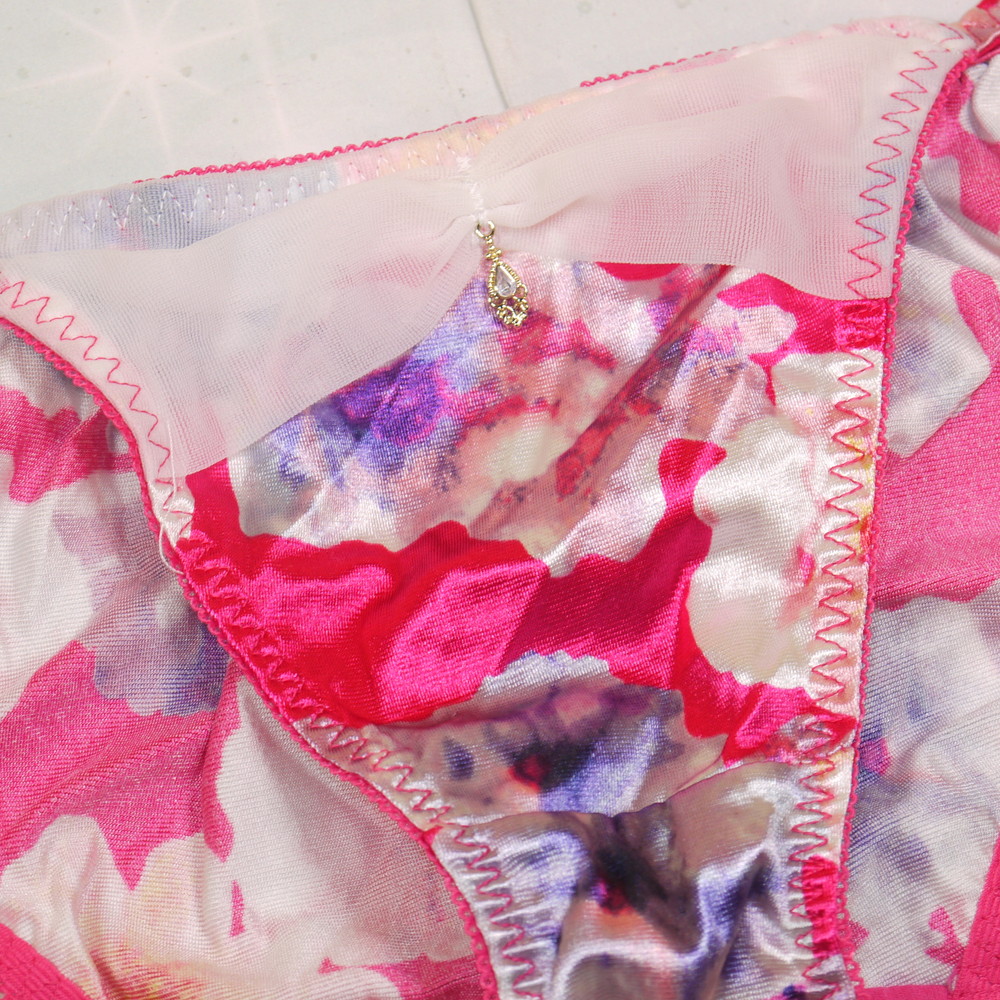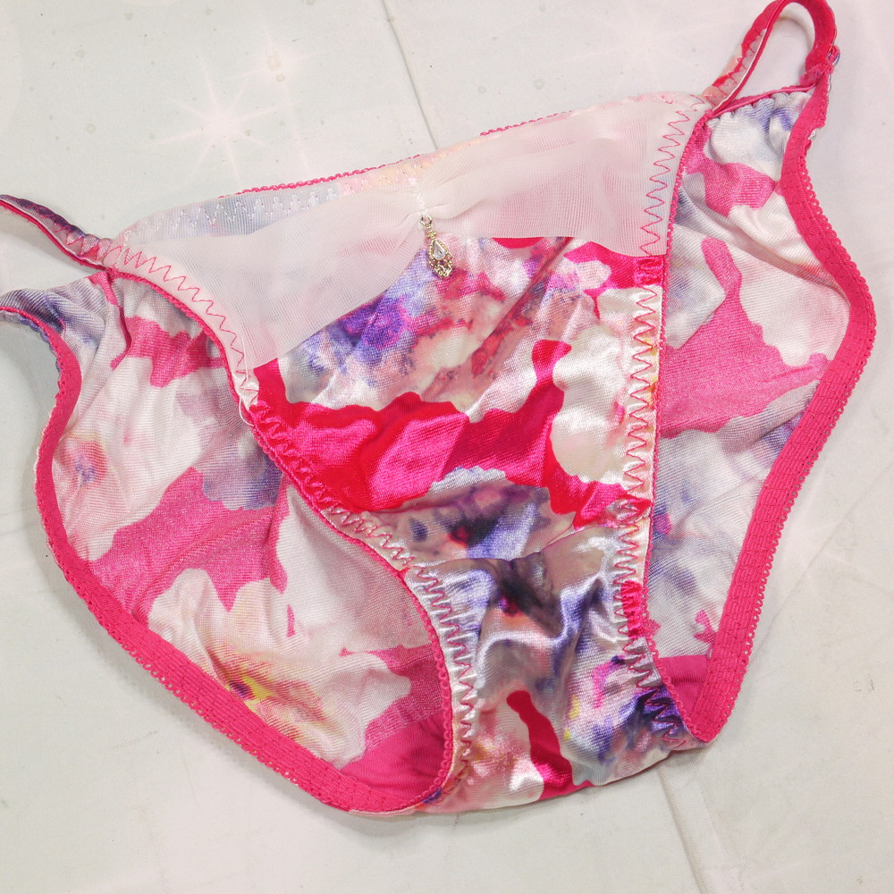 【Bランク/新古美品】エメフィール:Mサイズ ★ 甘サテンの派手ピンク KIRAチャーム ギャル・キャバ系パンティ