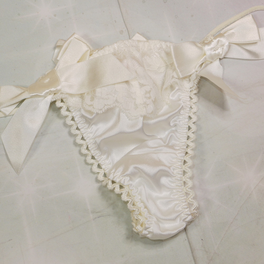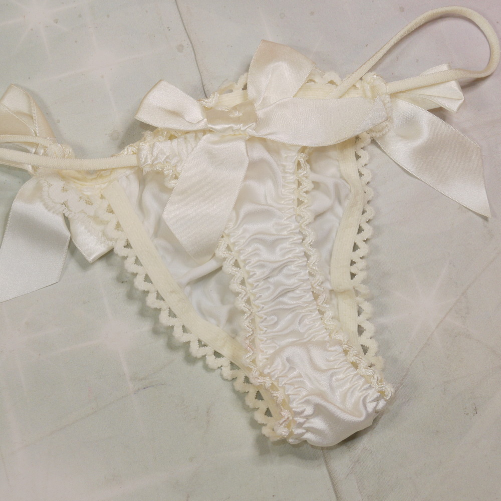 【Bランク/新古美品】Ravijour:F:MLサイズ程 ★ ラヴィ!平成ギャルもの 甘サテン白 デカりぼん GALパンティ T