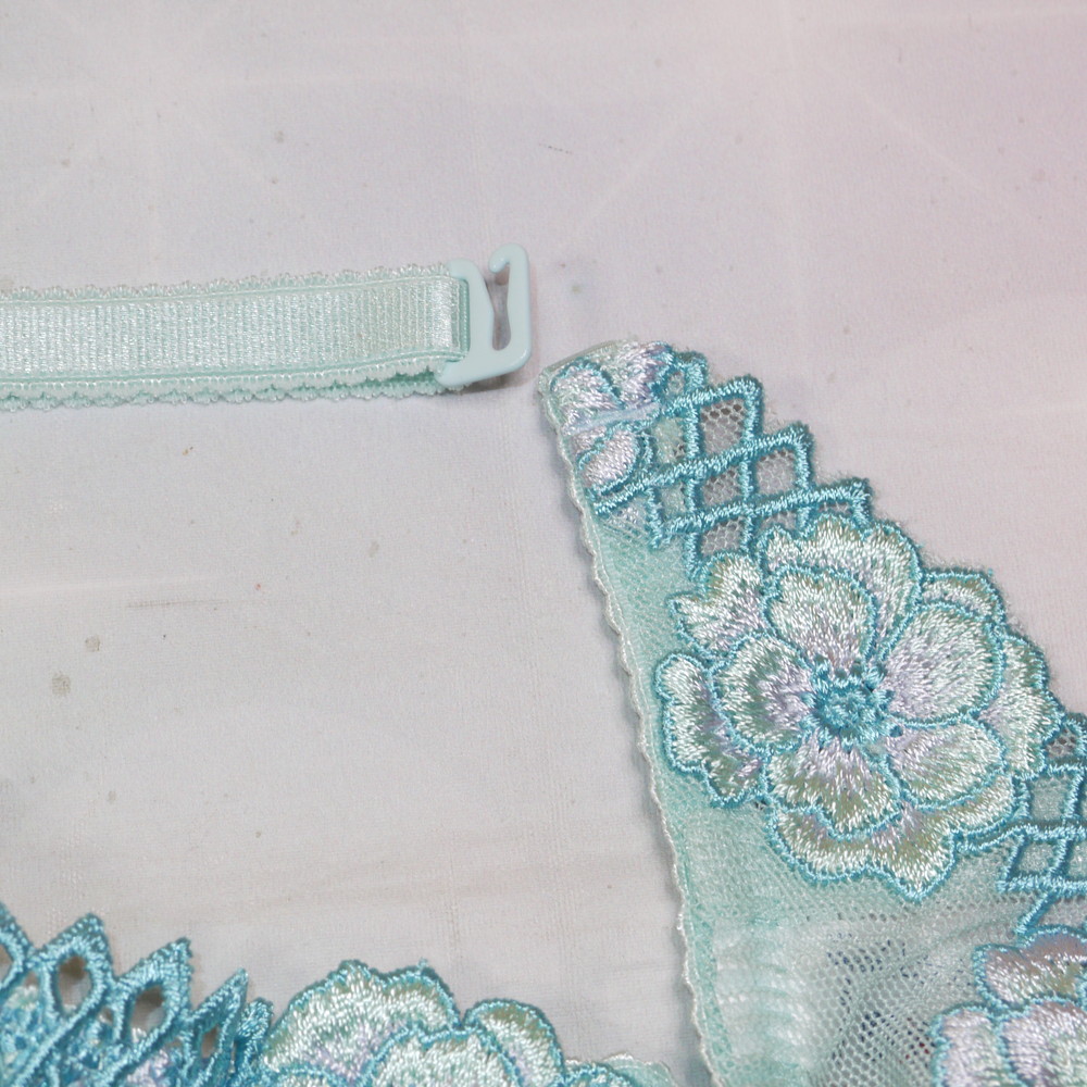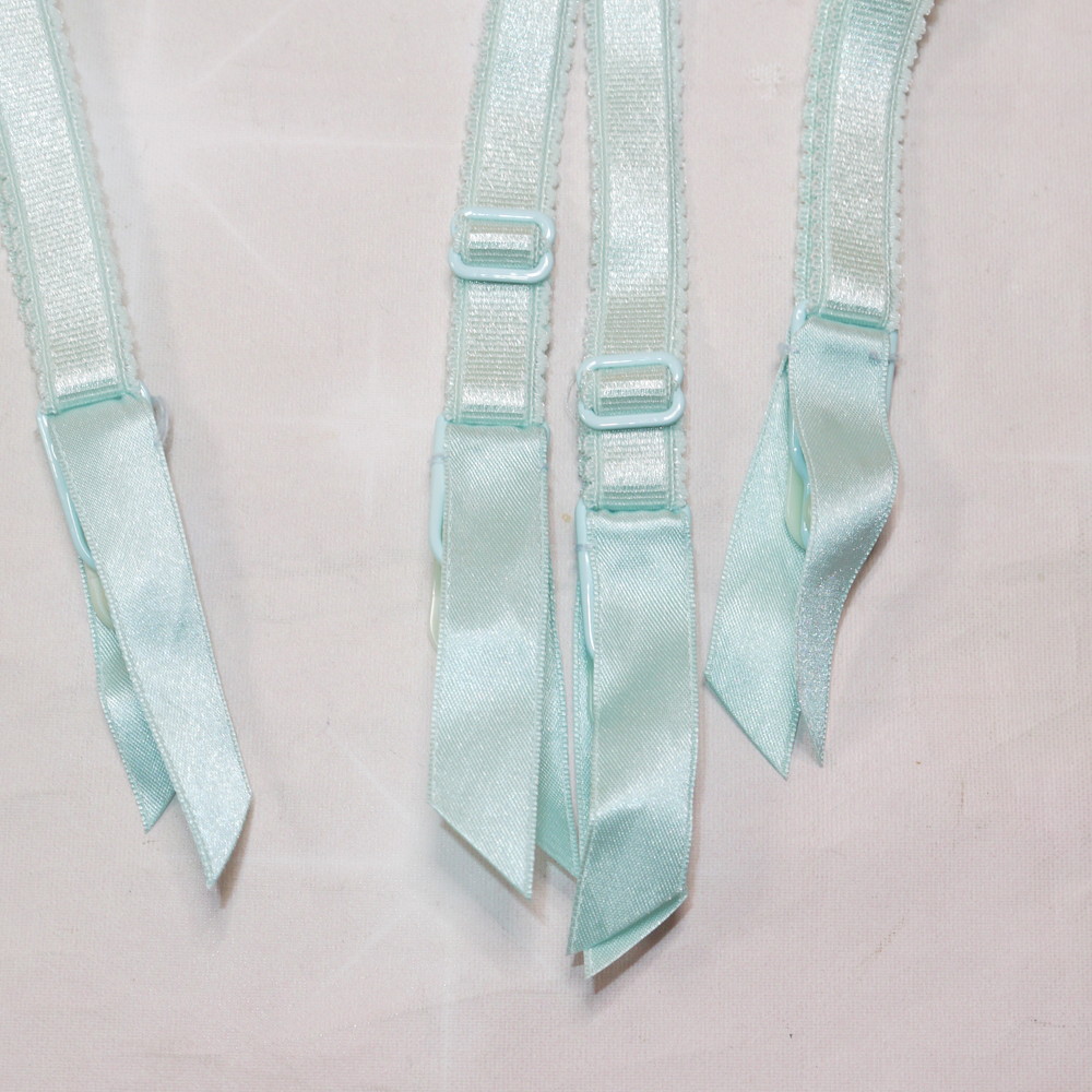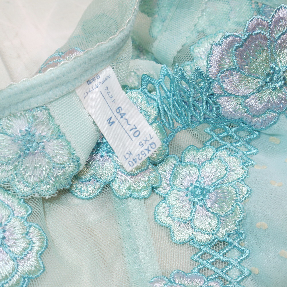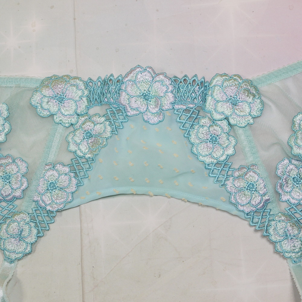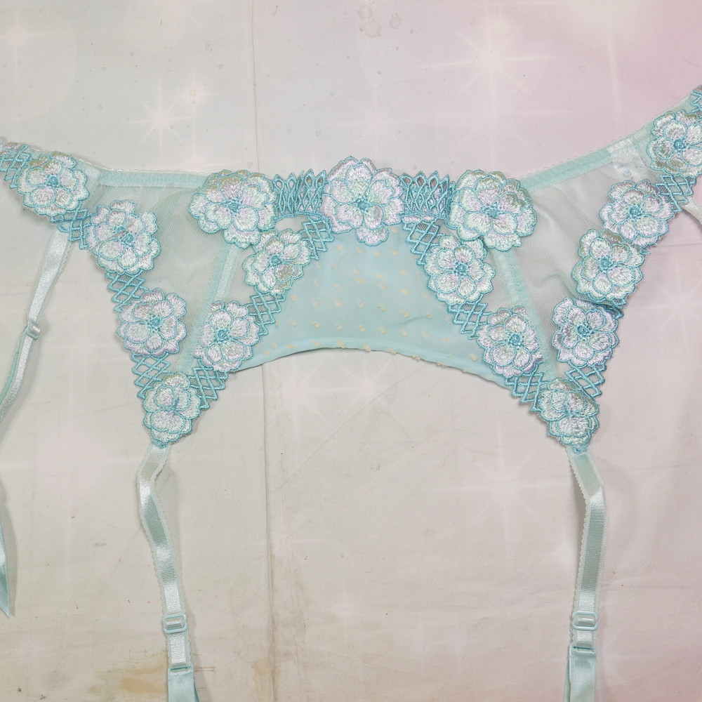 【Bランク/新古美品】スタディオファイブ:Mサイズ ★ 清楚感のライトブルー 桜風刺繍 レトロガーターベルト