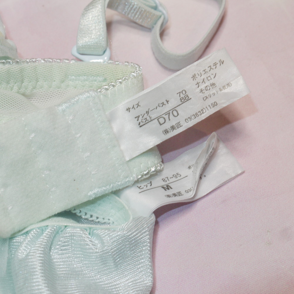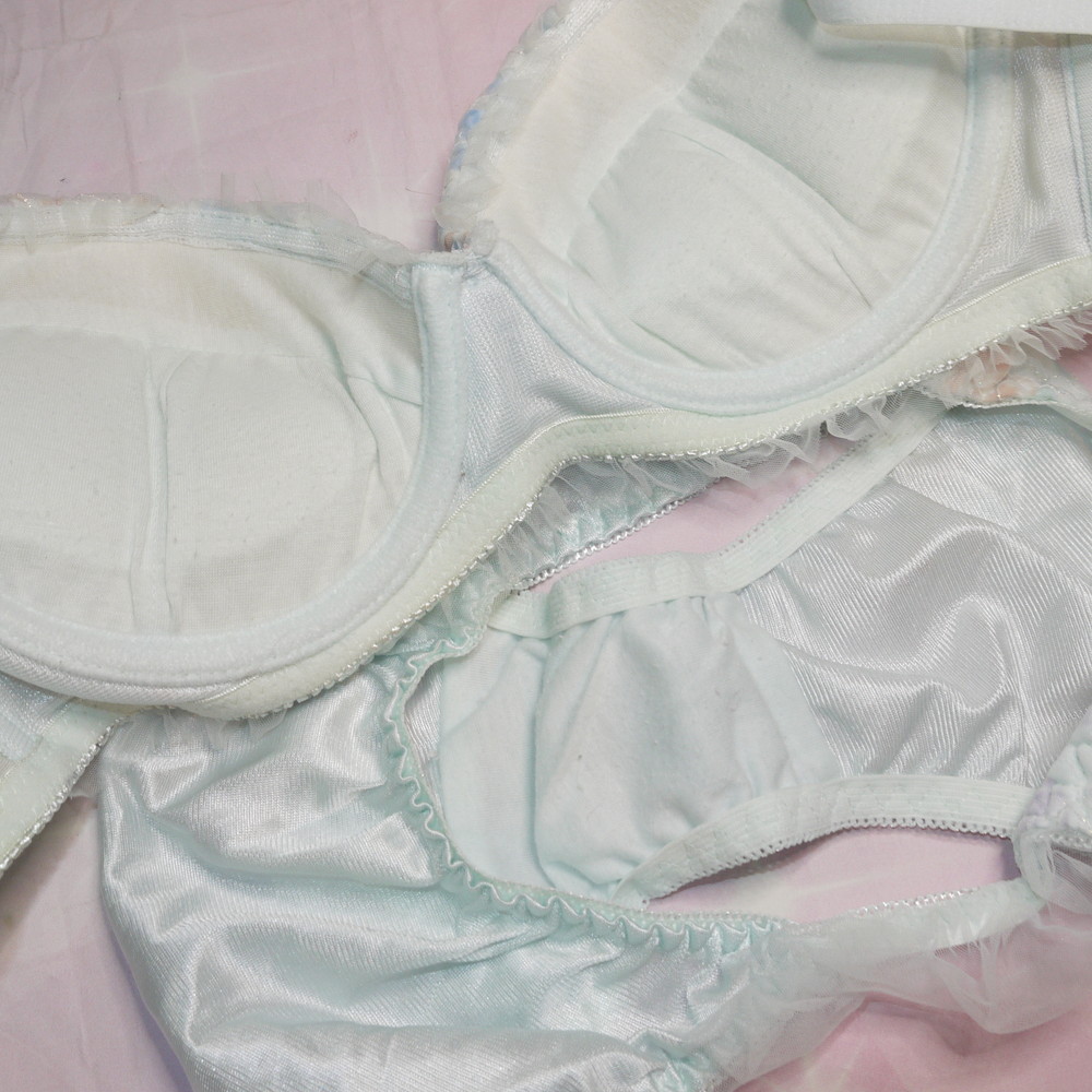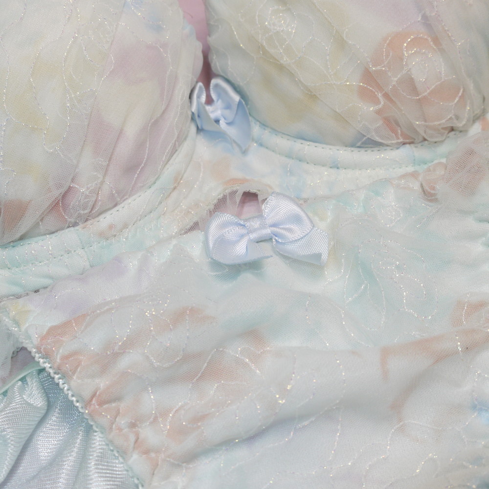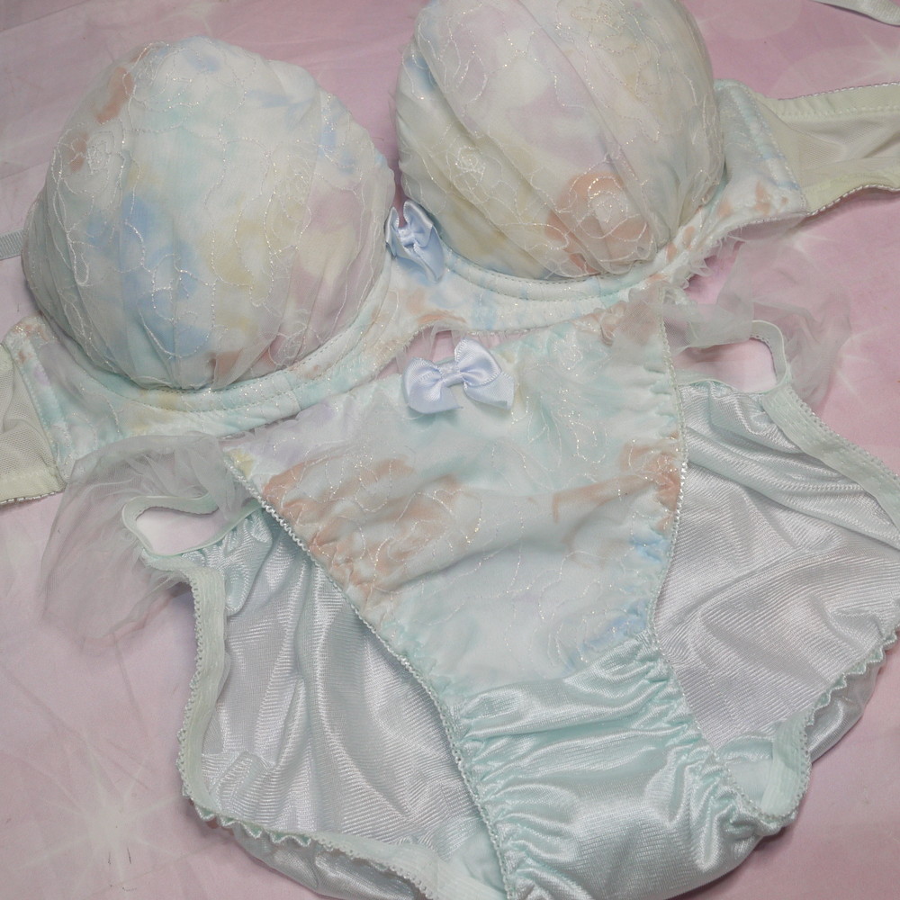 【BCランク】美匠:D70*88 Mサイズ ★ 清楚ライトブルー×甘とろサテン ラメ薔薇 厚盛 PBセット
