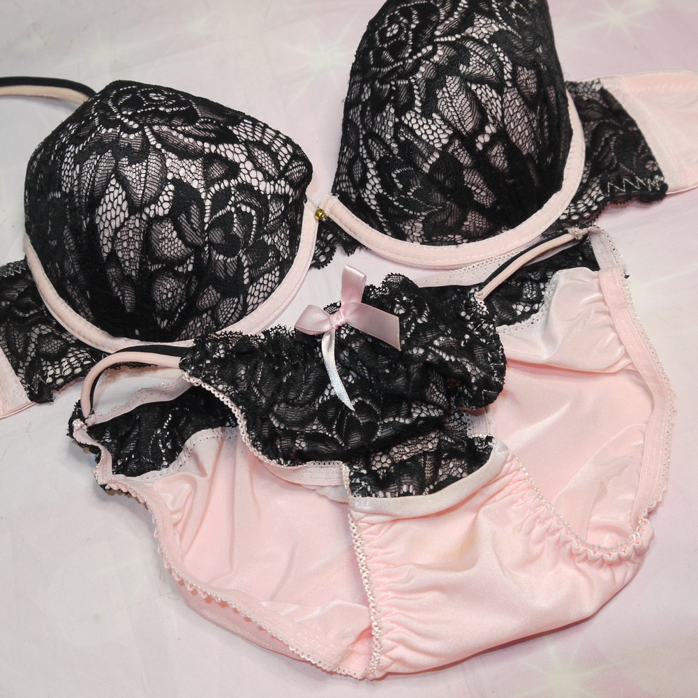 【Cランク/K43】:Dカップ程 Mサイズ ★ 甘ピンク×黒レース 平成ギャル系 厚盛 PBセット