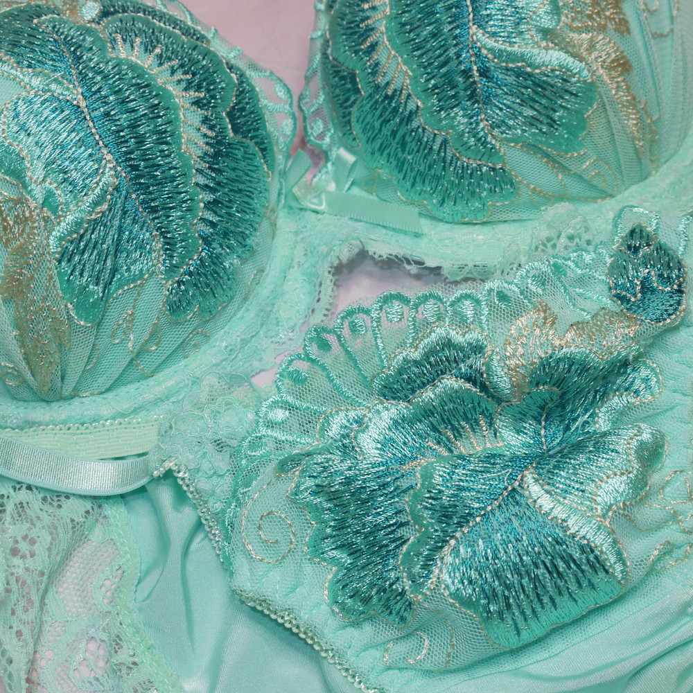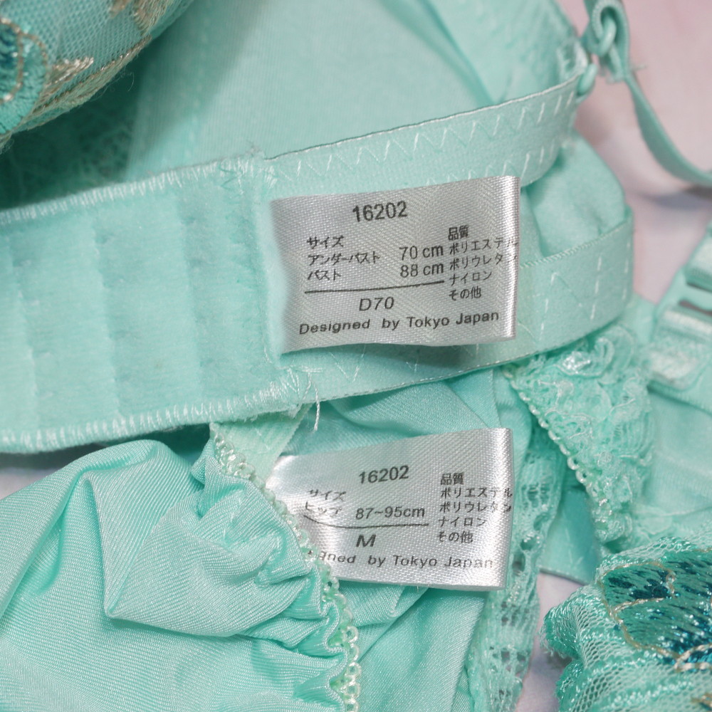 【Bランク/新古美品】三栄:D70*88 Mサイズ ★ 清楚感が凄いライトブルー 豪華絢爛の花刺繍 艶妻・お姉様系 PBセット