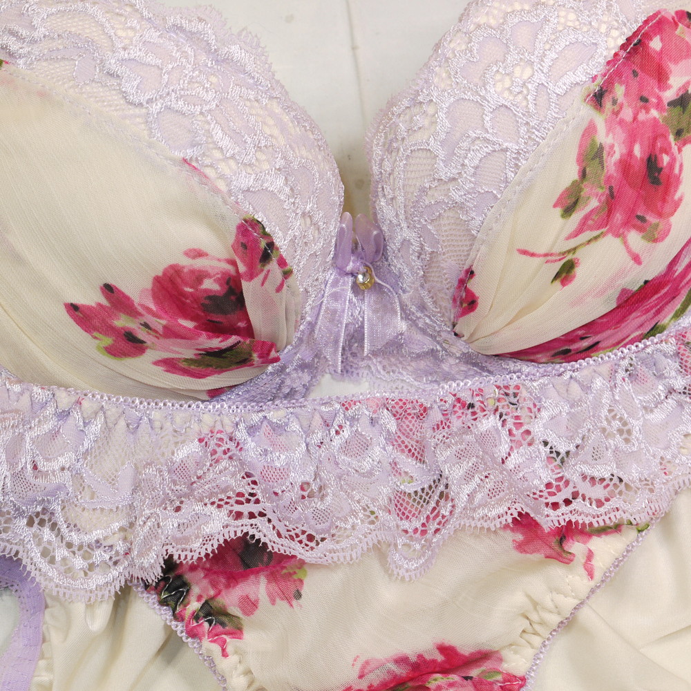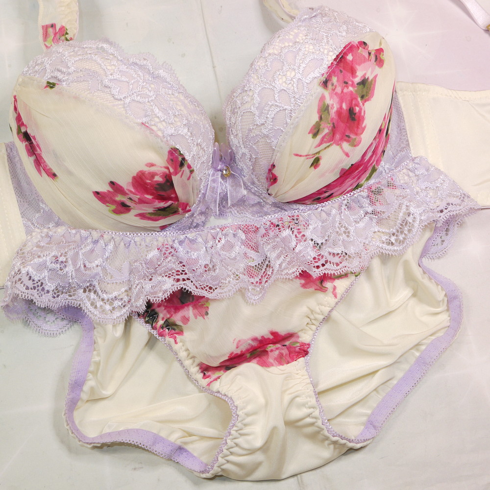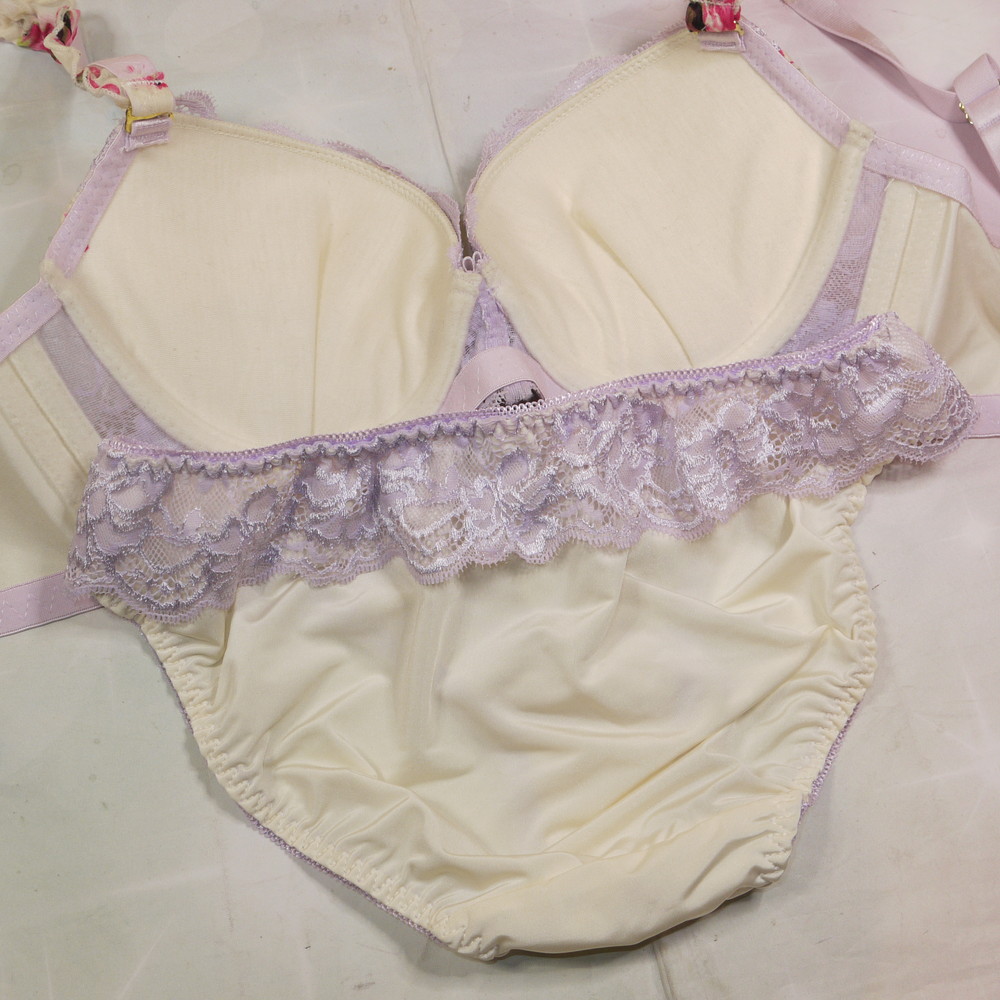 【ABランク/未使用?】三栄:D70*88 Mサイズ ★ 清楚クリーム生地&薔薇 ヴィンテージ お嬢様系 PBセット