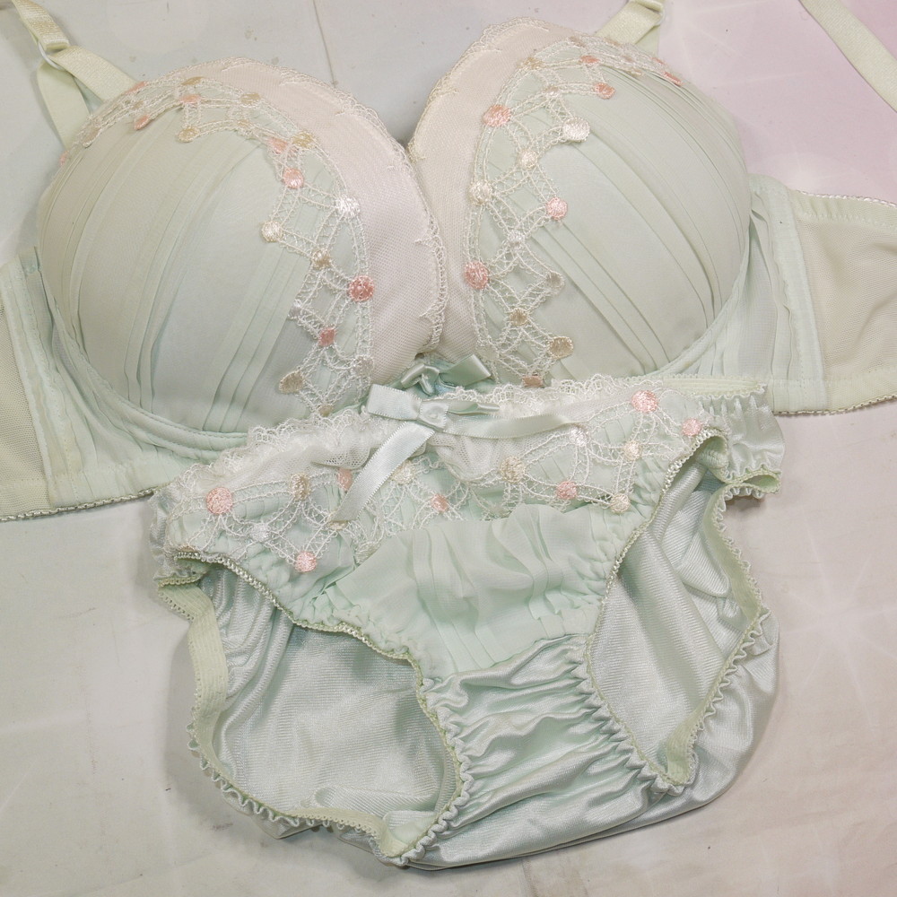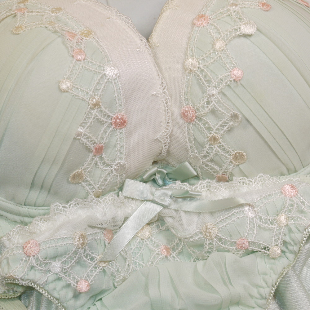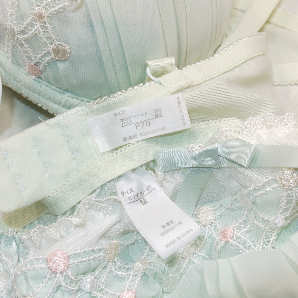 【Bランク/新古美品】美匠:F70*93 Mサイズ ★ 清楚ライトグリーン×ヴィンテージ調 爆乳デカブラ お嬢様系PBセット