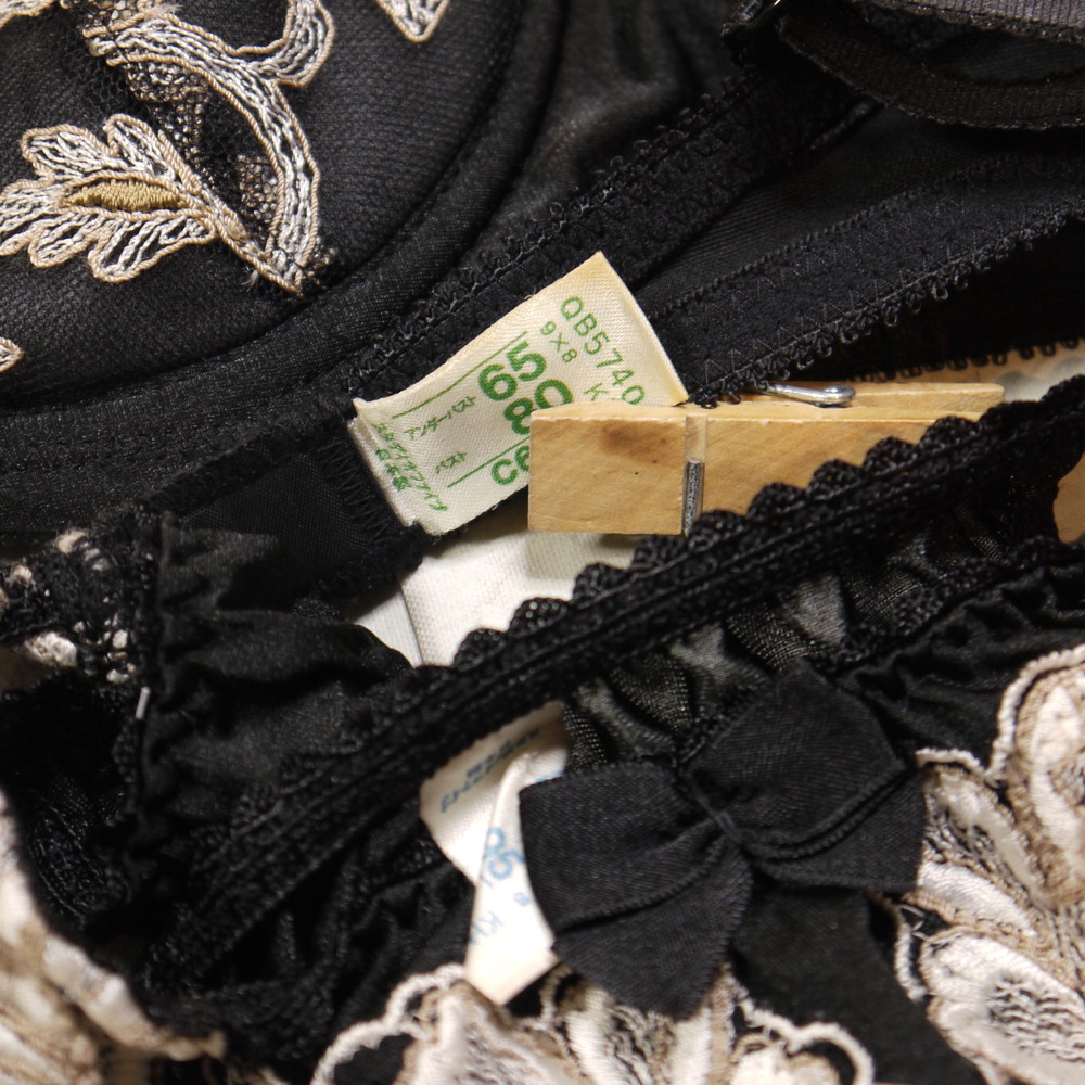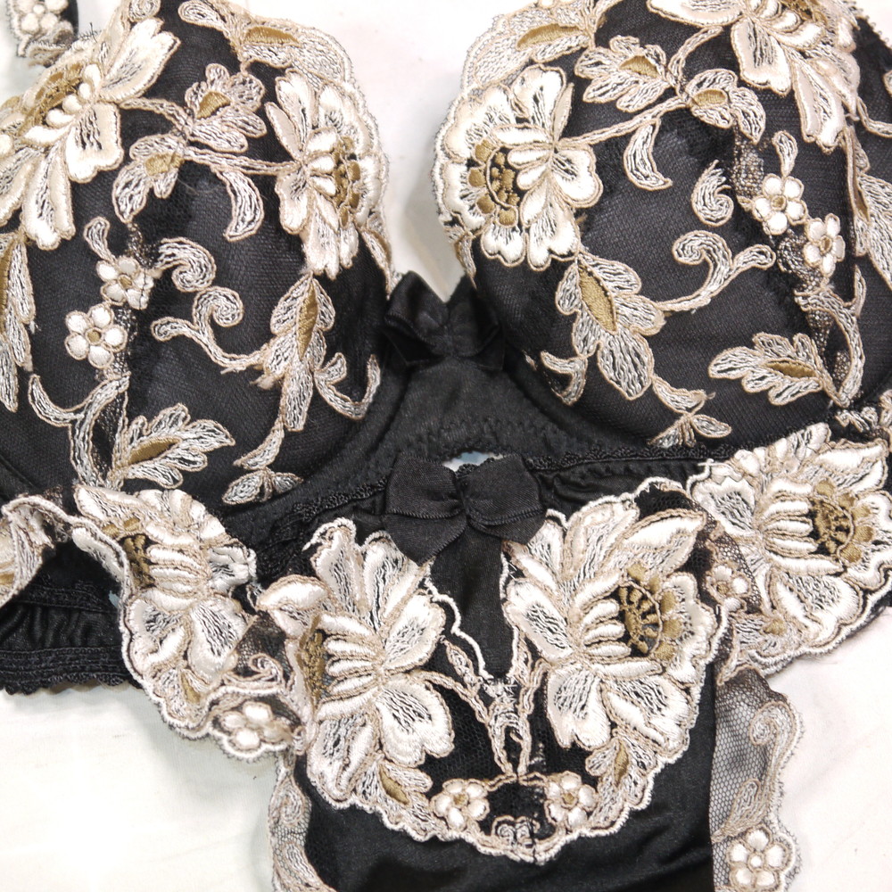 【Cランク/K43+】スタディオファイブ:C65*80 Mサイズ ★ クールで大人な黒×大輪花 ランジェ T PBセット