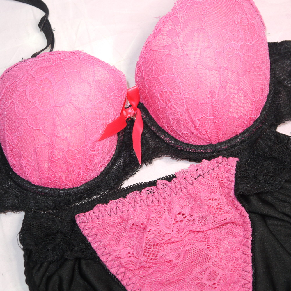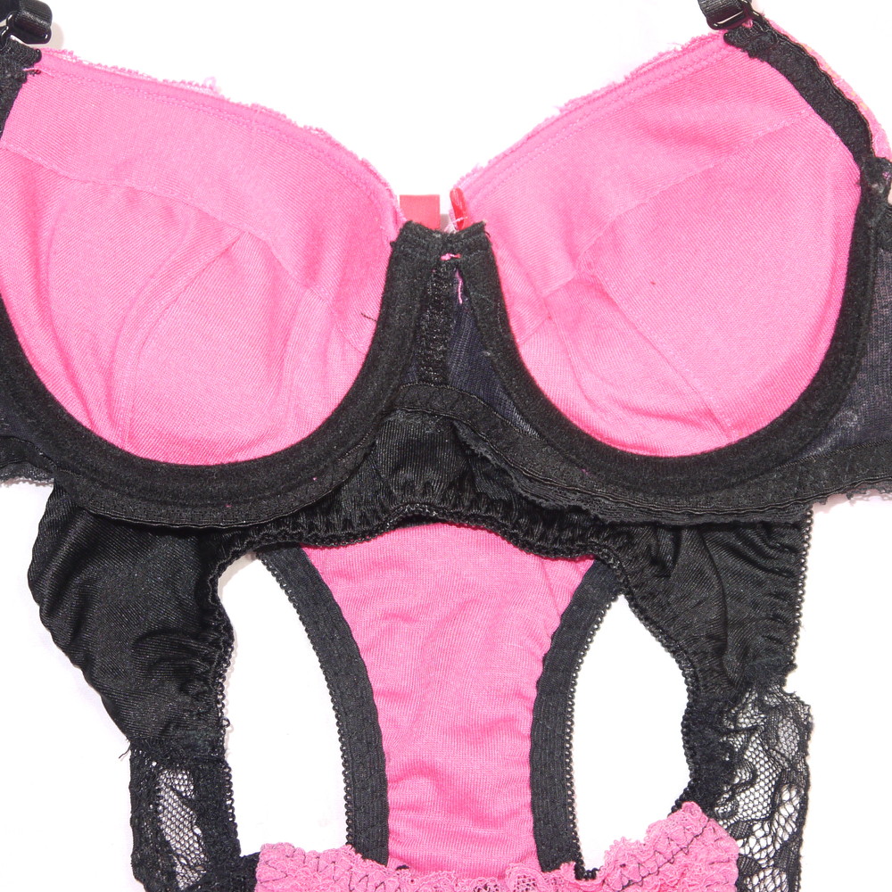 【Bランク/新古美品】日本ニット:C65*80 Mサイズ ★ ド派手ピンク×黒 厚盛 JCJK系 ギャル 小悪魔PBセット