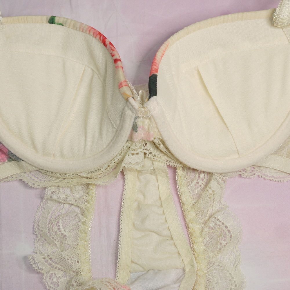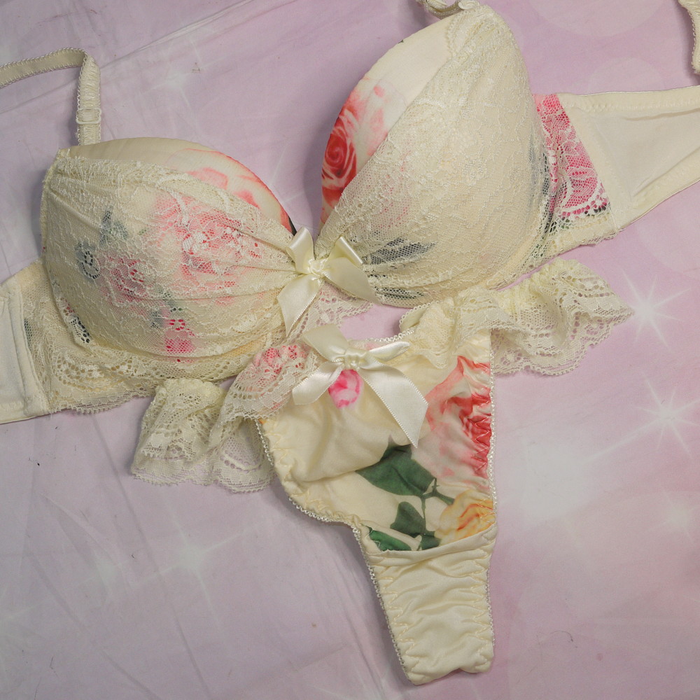 【Bランク/新古美品】三栄:D70*88 Mサイズ ★ ライトイエロー×お花柄 お姉ギャル&キャバ系 T PBセット