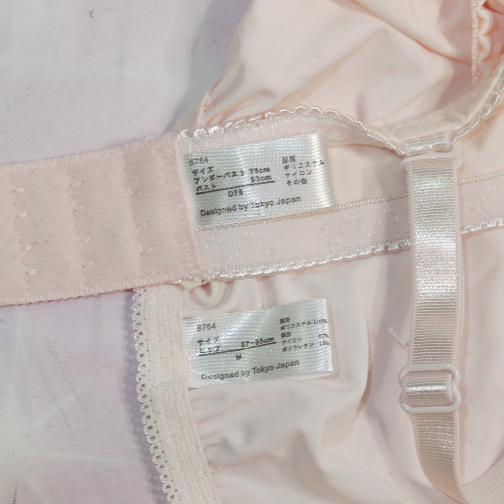 【Bランク/新古美品】サンロード:D75*83 Mサイズ ★ 甘やわピンク×薔薇リーフ 厚盛 お嬢様感UP JCJK系 PBセット