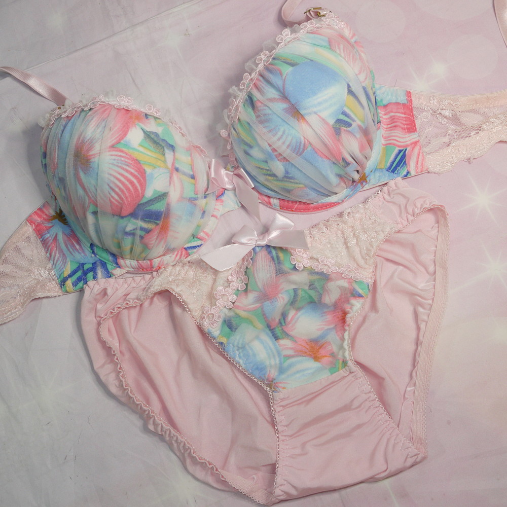 【BCランク/BK43-】三栄:C75*90 Mサイズ ★ ロリっとキュートなピンク×ボタニカル? ティーンズGAL系 PBセット 厚盛