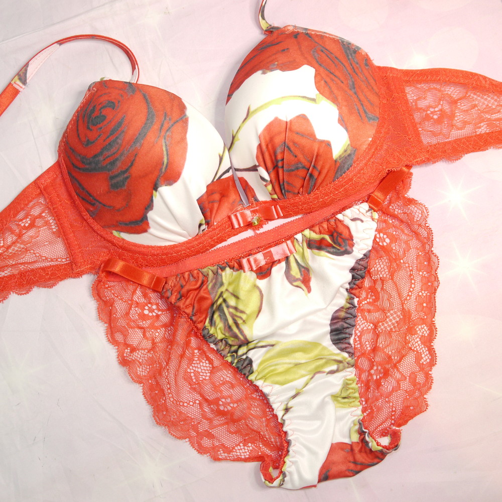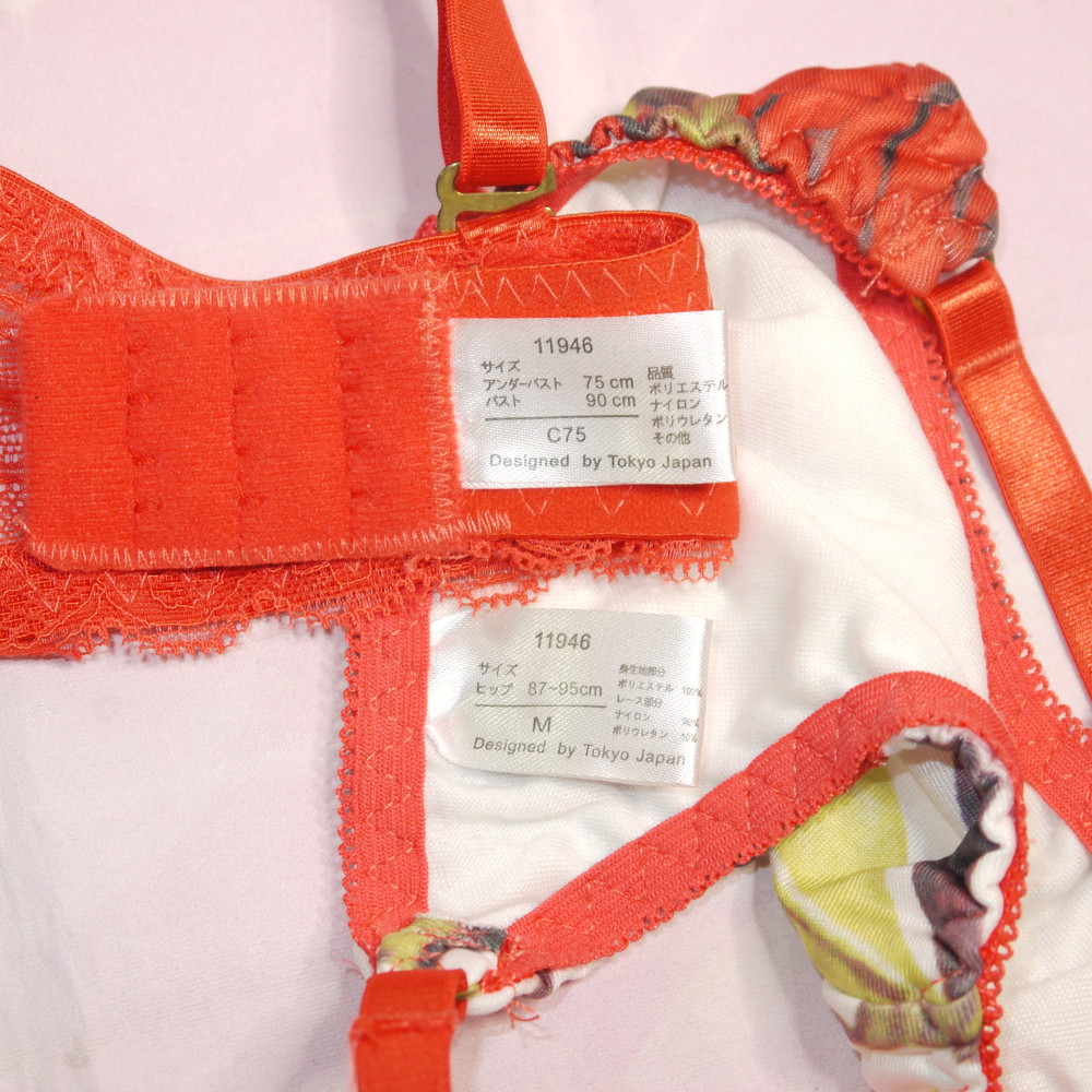 【Bランク/新古美品】三栄:C75*90 Mサイズ ★ パキッと艶やか赤下着 薔薇 透レース 厚盛 お姉ギャル系 PBセット