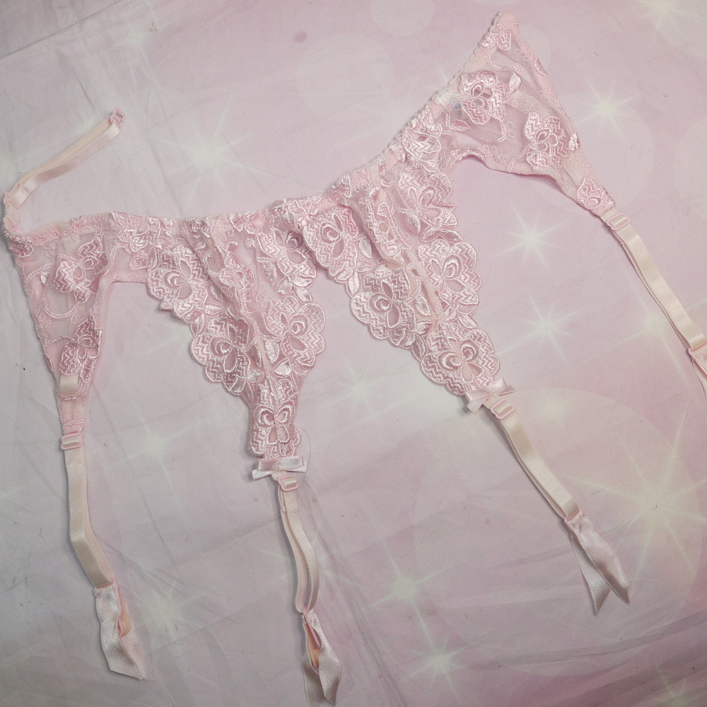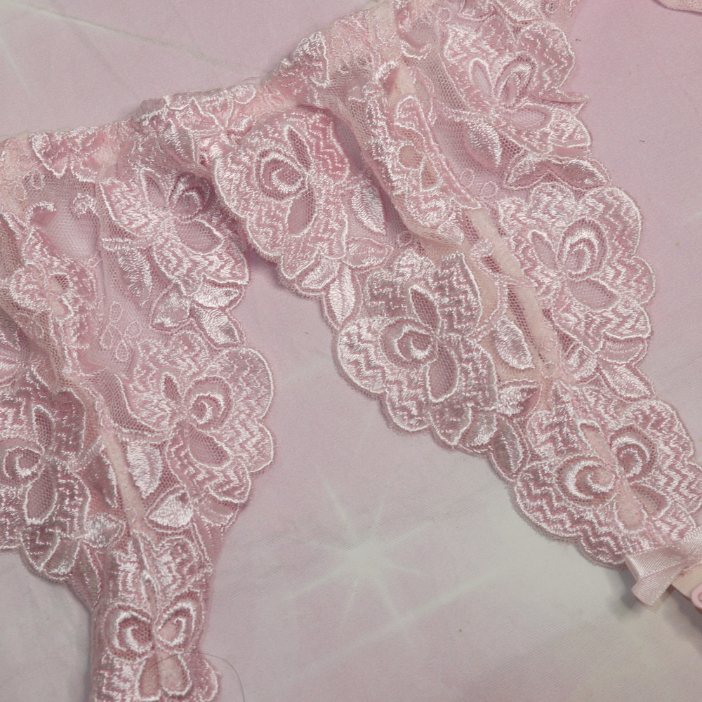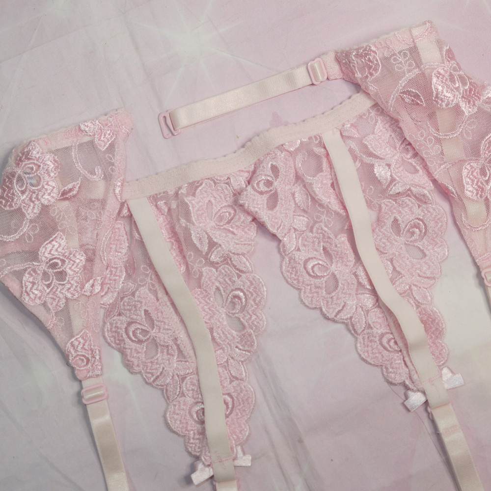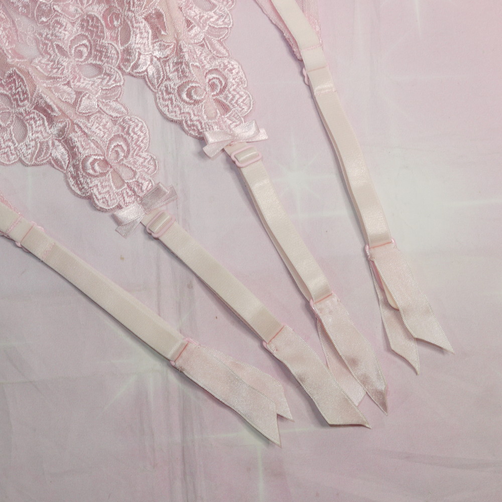 【Bランク/新古美品】スタディオファイブ:Mサイズ ★ 清楚ピンク×レトロ花刺繍 ガーターベルト