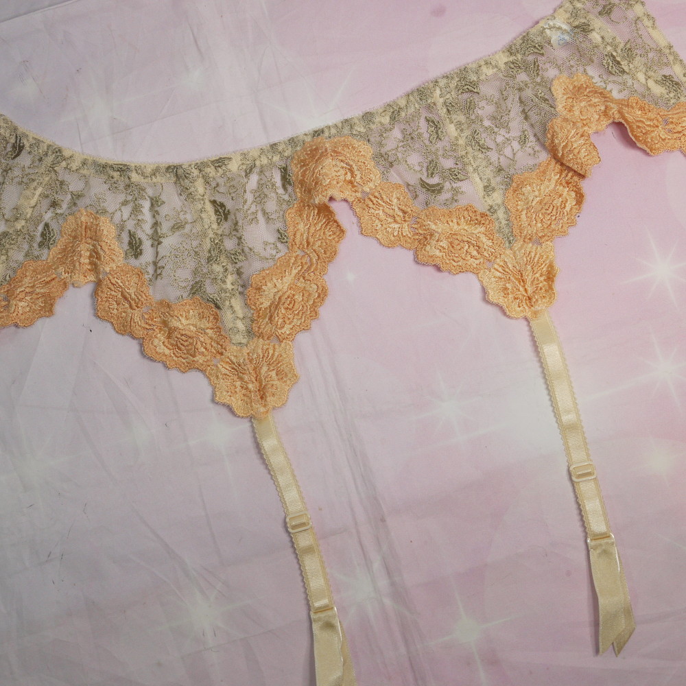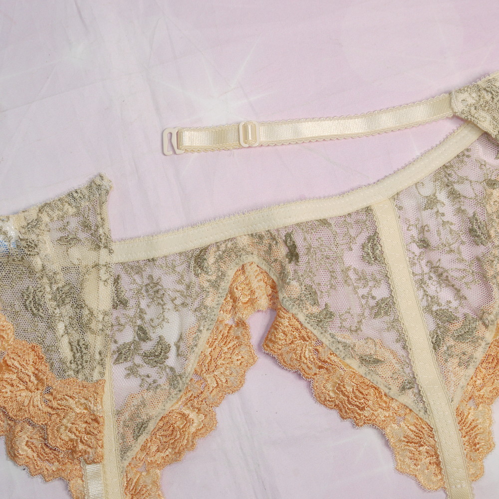 【Bランク/新古美品】スタディオファイブ:Mサイズ ★ マダム感UPの透かしレース 淡イエロー ガーターベルト