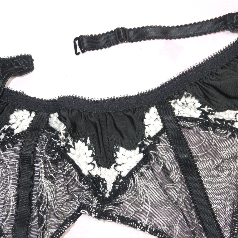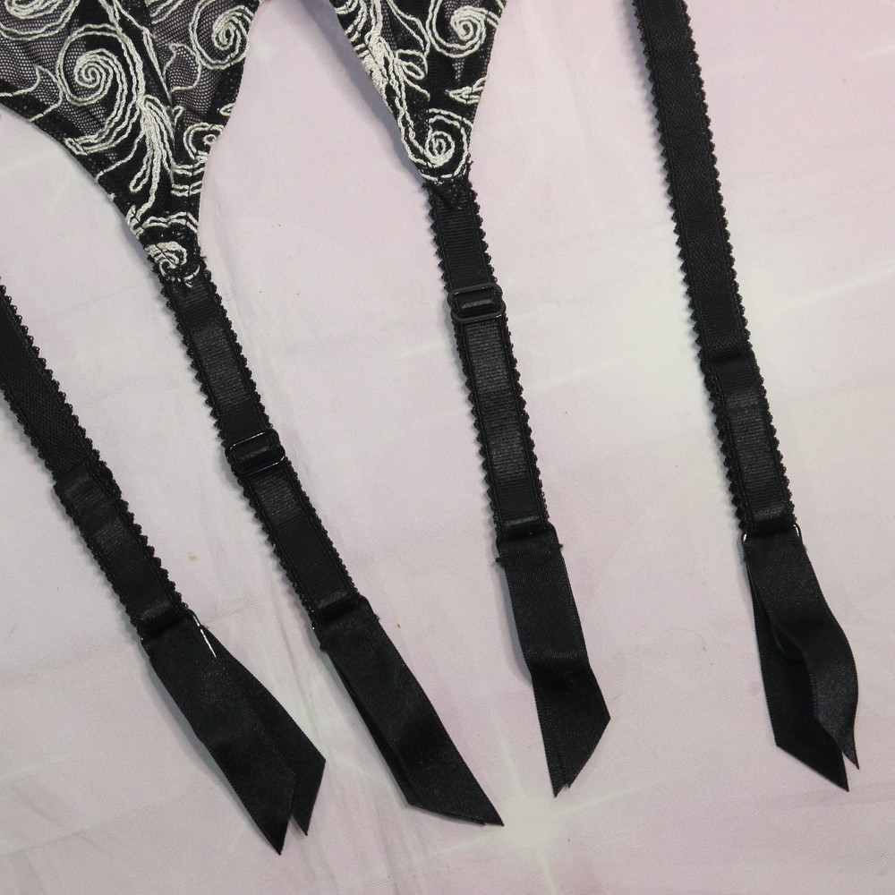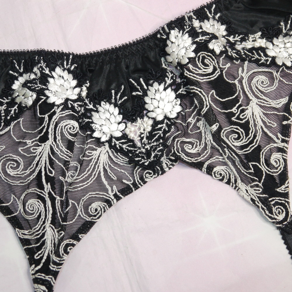 【Bランク/新古美品】スタディオファイブ:Mサイズ ★ 奥様度が上がる大人黒 白花刺繍 ガーターベルト