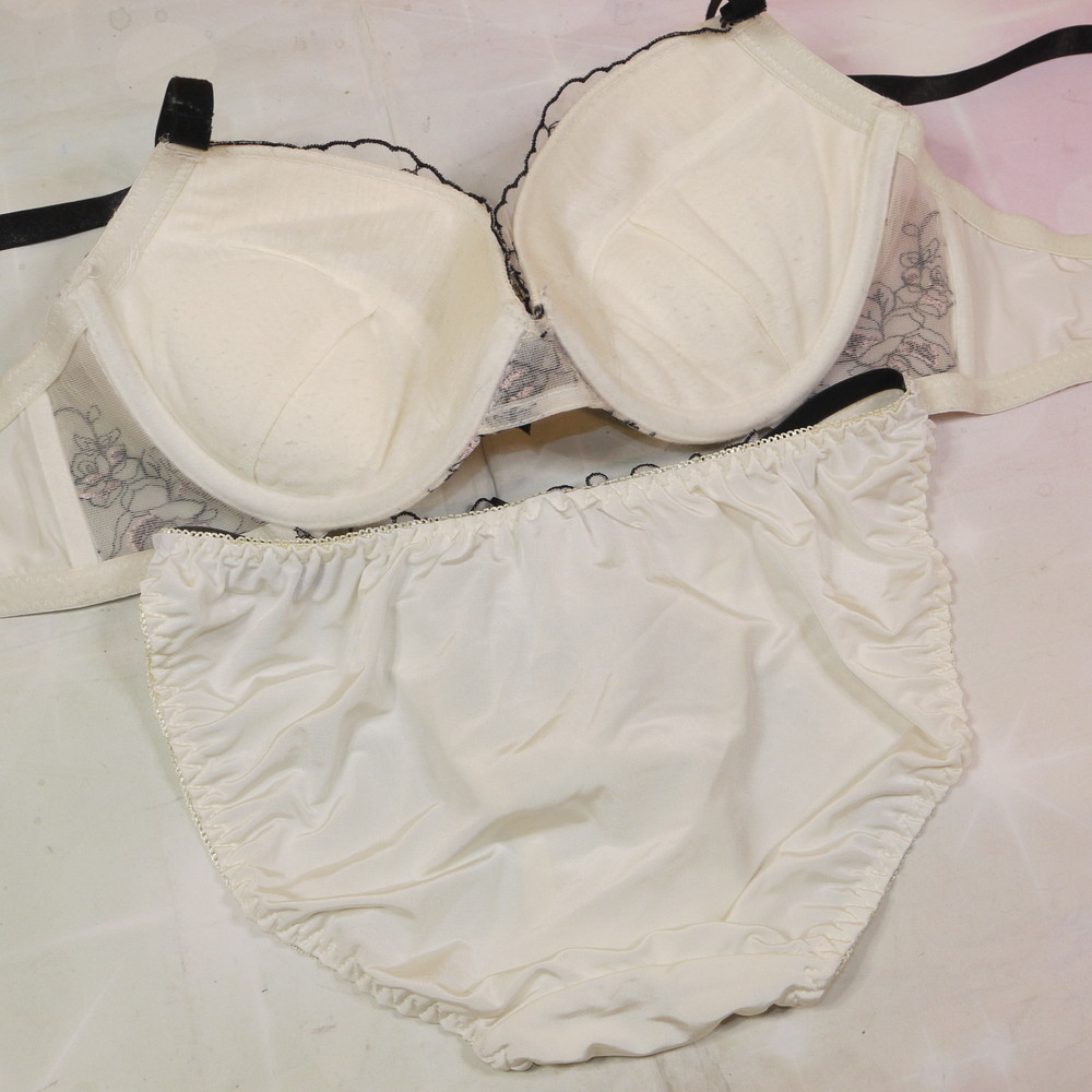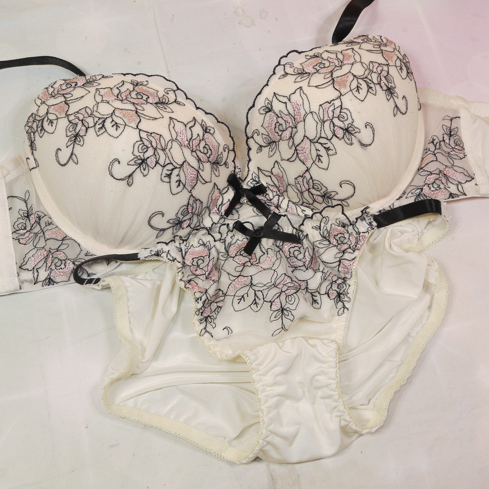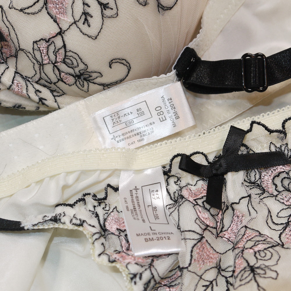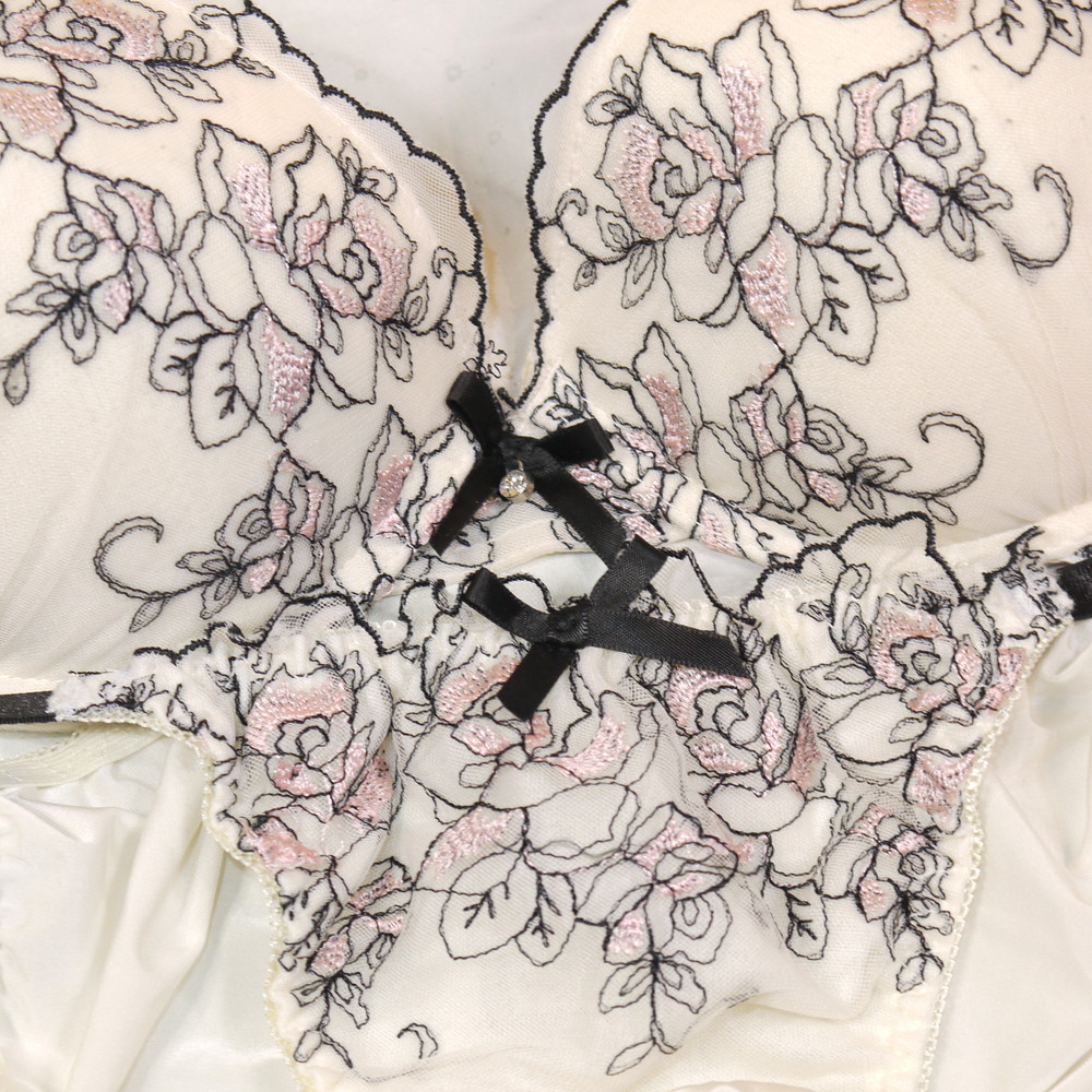 【BCランク】日本ボディファッション:E80*100 Lサイズ ★ 清楚感のオフホワ×薔薇刺繍 厚盛 希少80 メガ 肉感PBセット