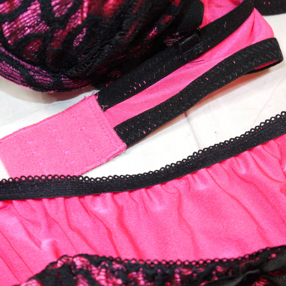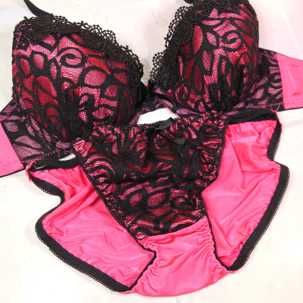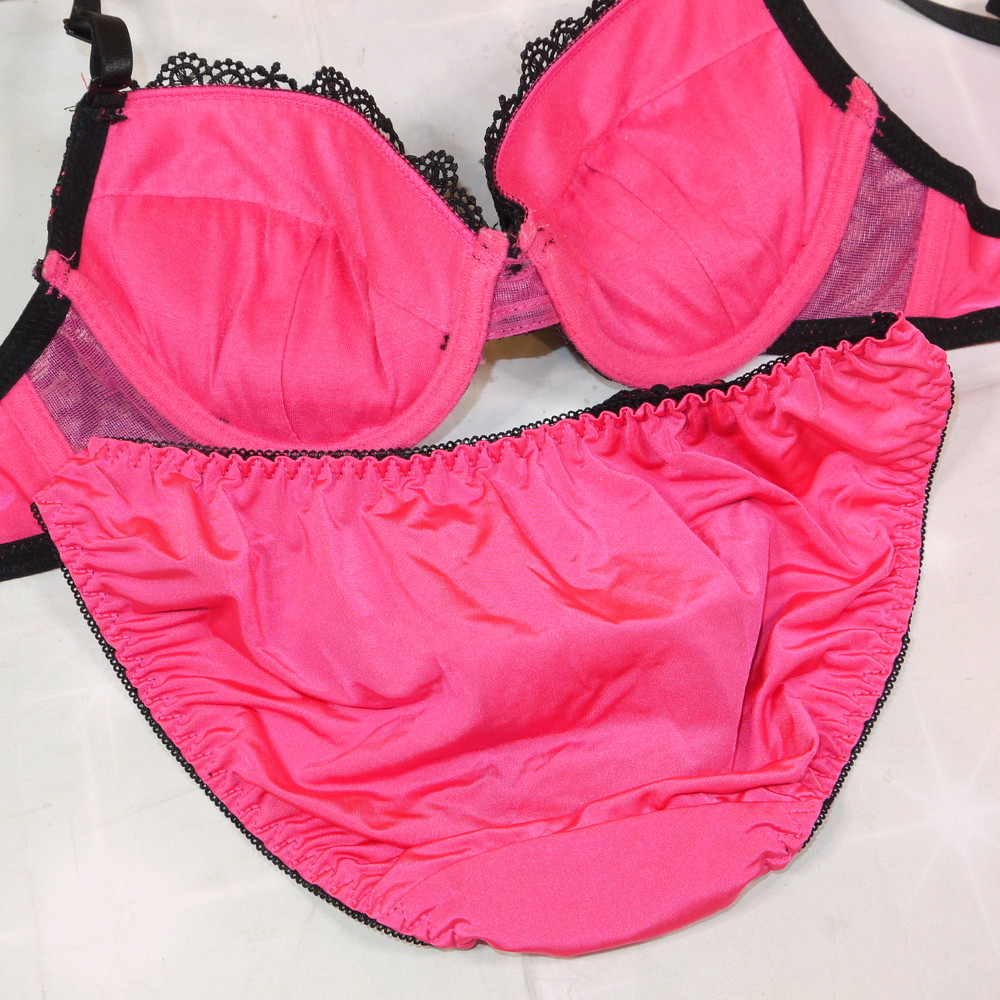 【Bランク/新古美品】:Dカップ程 MLサイズ程 ★ ド派手ピンク 激厚盛 黒肌ギャル系のレア下着 PBセット