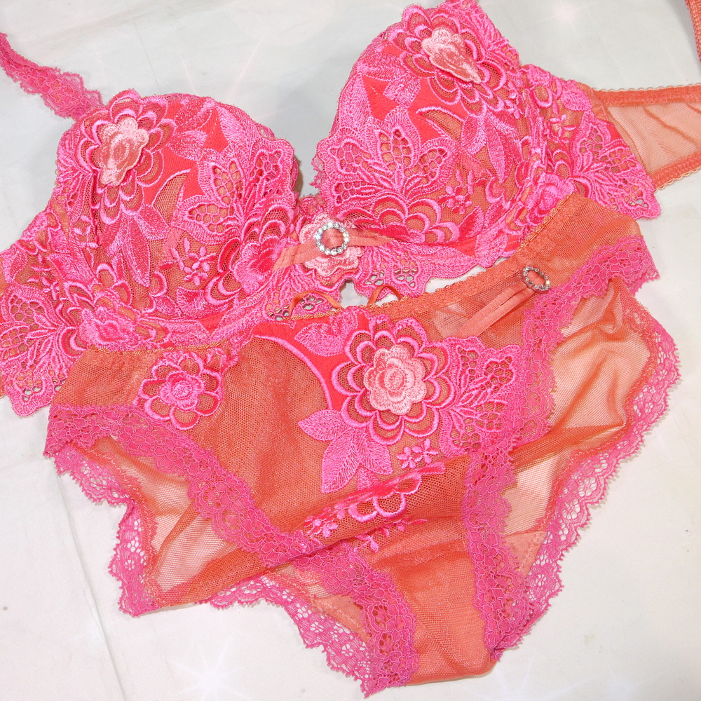 【Bランク/新古美品】スタディオファイブ:C70*85 Mサイズ ★ 艶やかオレンジ?ピンク 豪華絢爛の花刺繍 スワロフ? PBセット