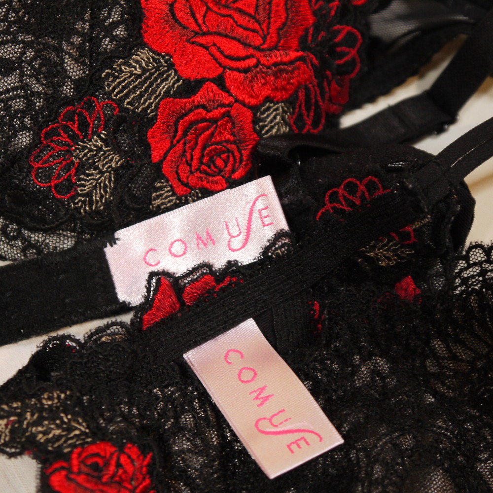 【BCランク】白鳩:B65*78 Mサイズ ★ COMUSE!サルートの愛人にそっくり 黒×艶赤薔薇 T PBセット