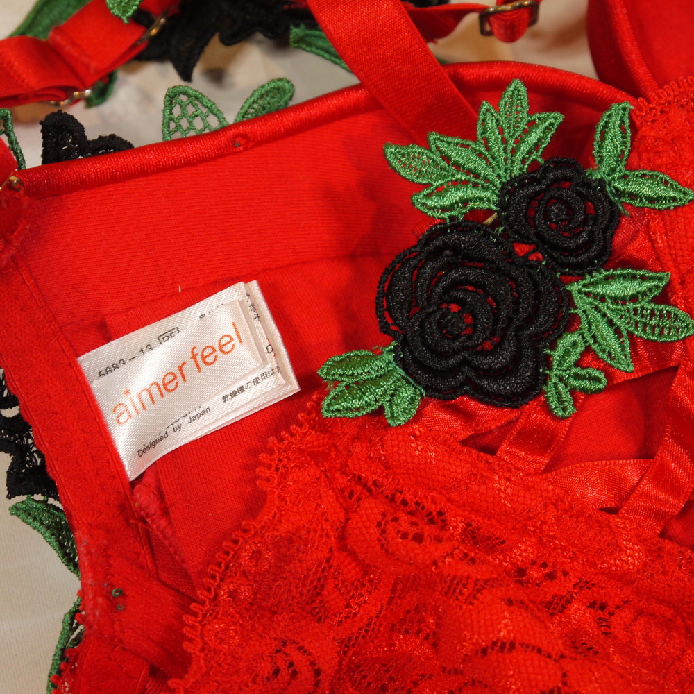 【Bランク/新古美品】エメフィール:D65*83 ★ 出ました激レア品!平成ギャル・強めギャル 黒薔薇 Yバック ブラ