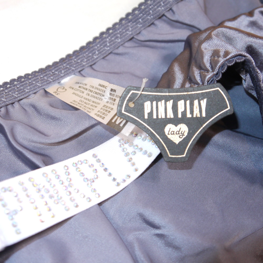 【タグ付】PINK PLAY:Mサイズ ★ 甘サテンのグレー サイドルース ダンサーギャル系 パンツ