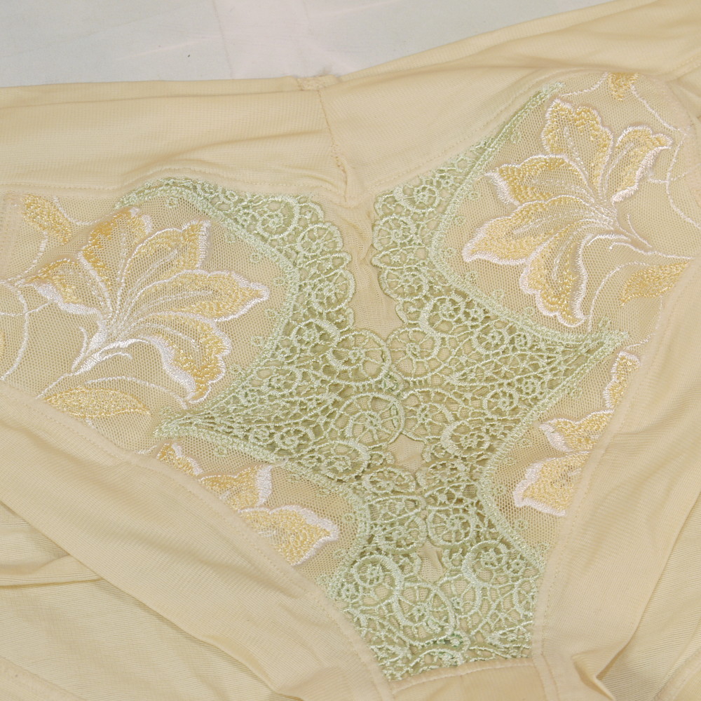 【Bランク/新古美品】MARUKO:Mサイズ ★ モンマリエ!ライトイエロー&百合刺繍 垂尻UP ガードルショーツ