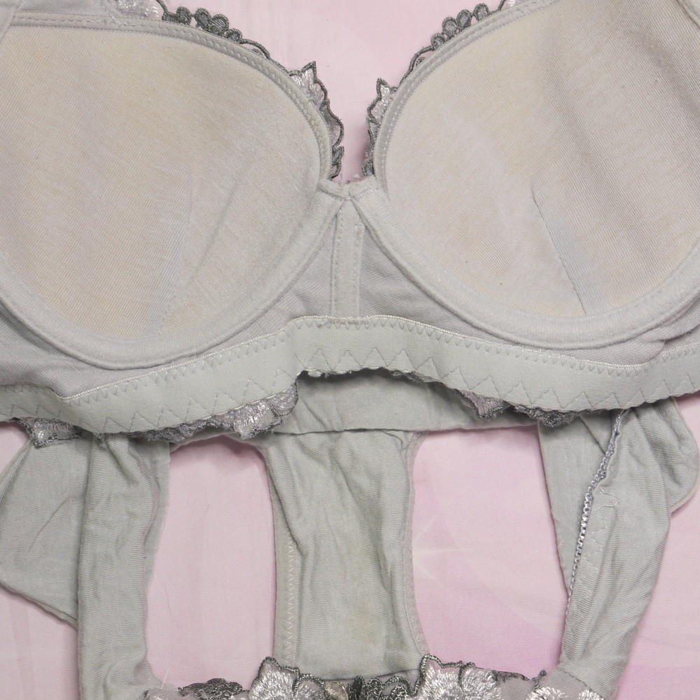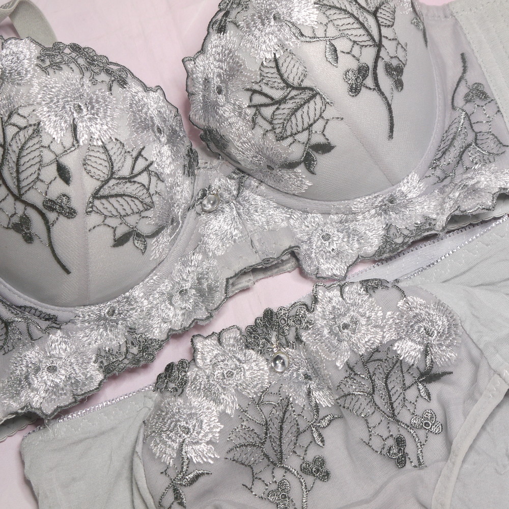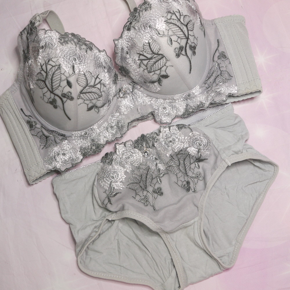 【BCランク/BK43】アメット:34/75:Dカップ程 ML程 ★ 大人グレー×花刺繍 むっちり奥様系 PBセット
