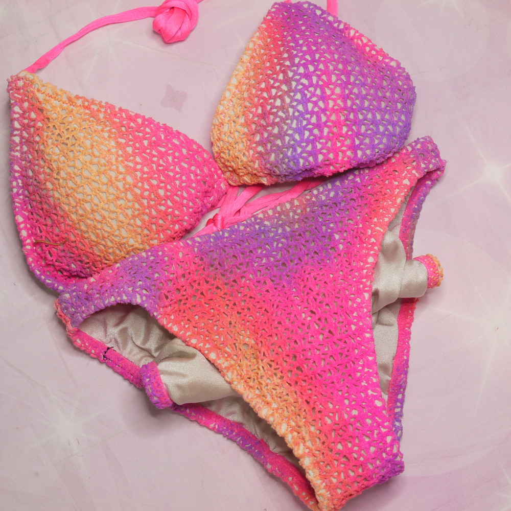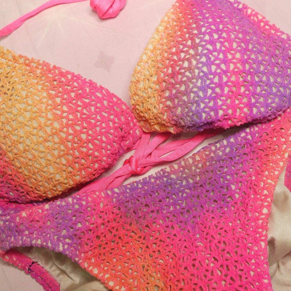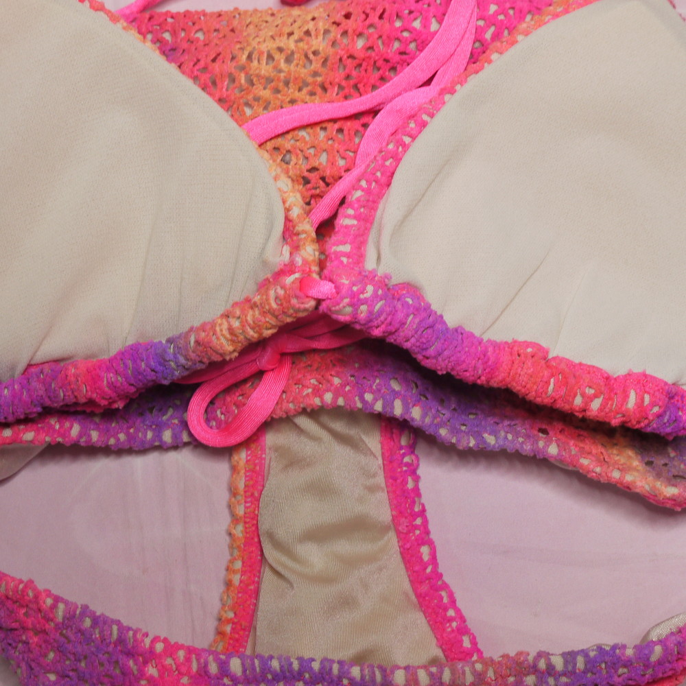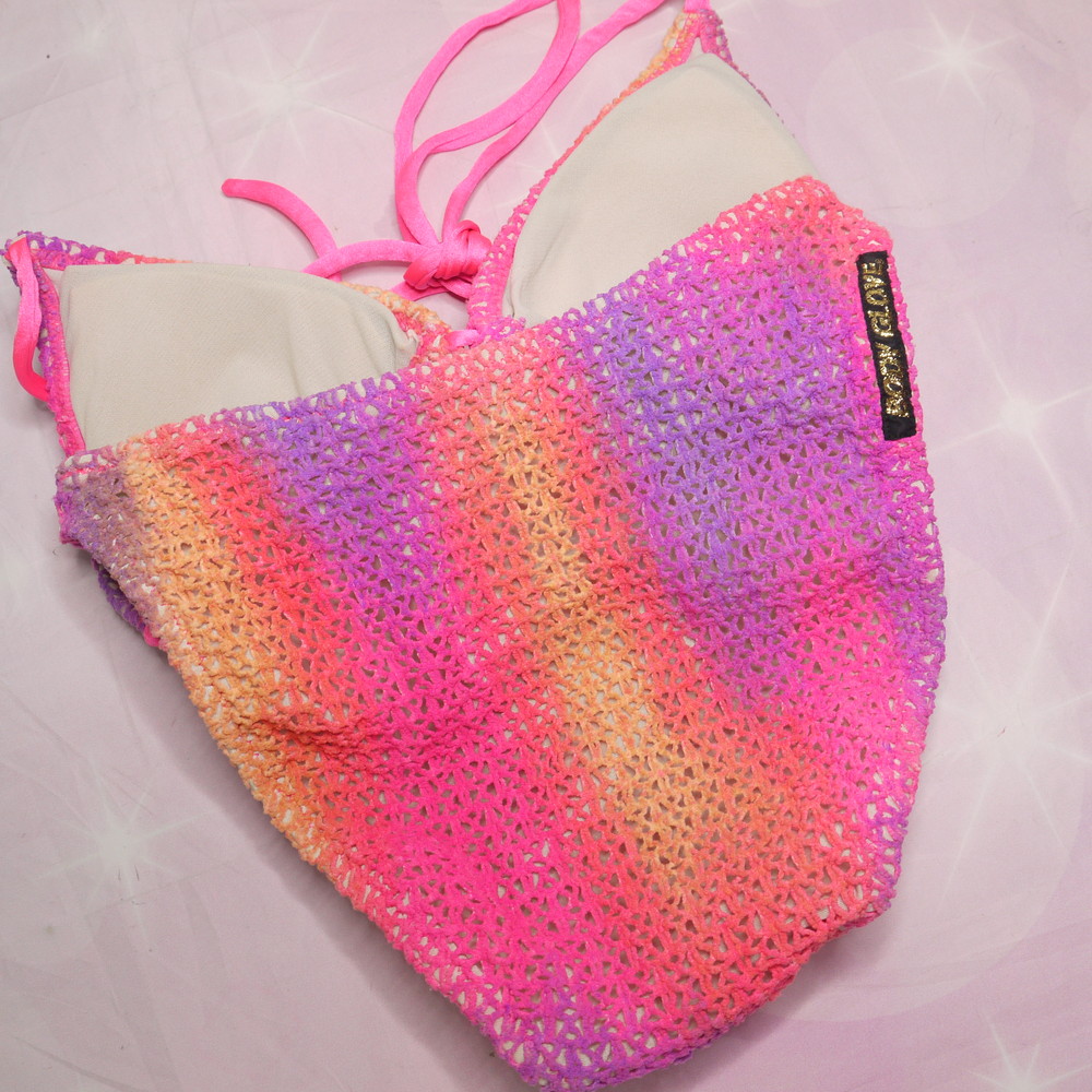 【Bランク/新古美品】BODY GLOVE:Mサイズ ★ ド派手なピンク&カラフル 夏ギャル 三角ビキニ ノンワイヤー