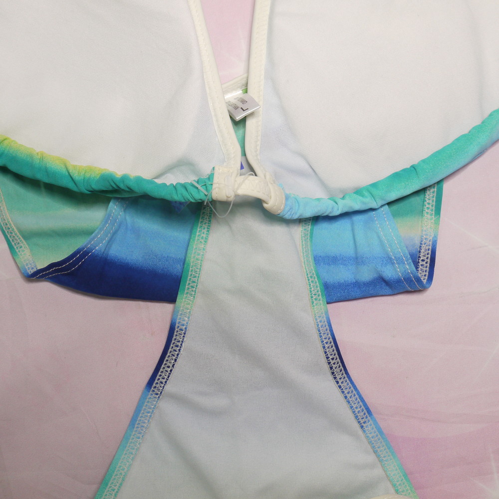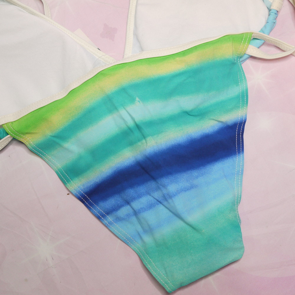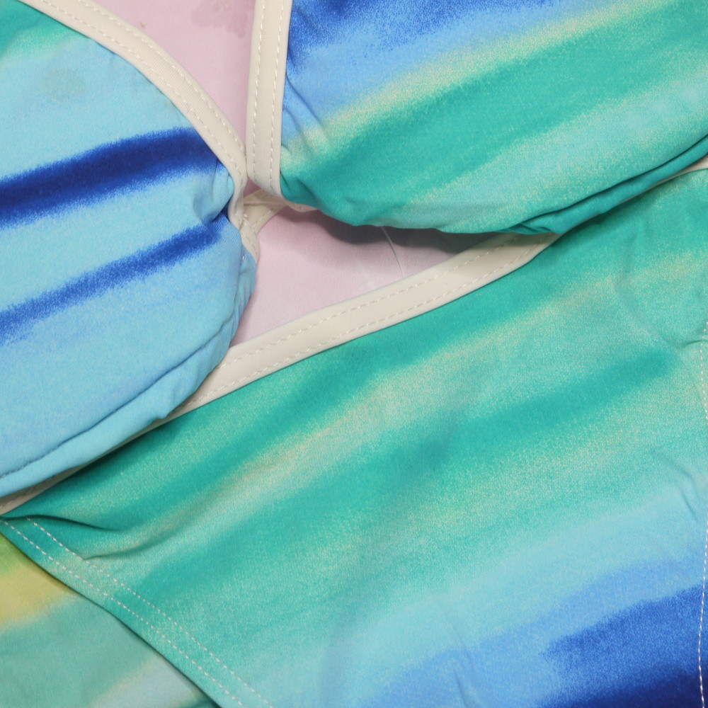 【BCランク/43】WeiJiashi:Lサイズ ★ 夏ブルー×サンバースト 三角ビキニ 夏ギャル ワイヤーなし