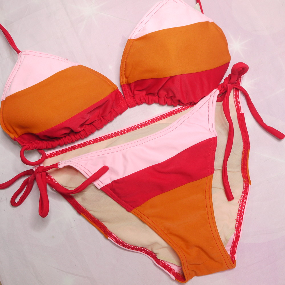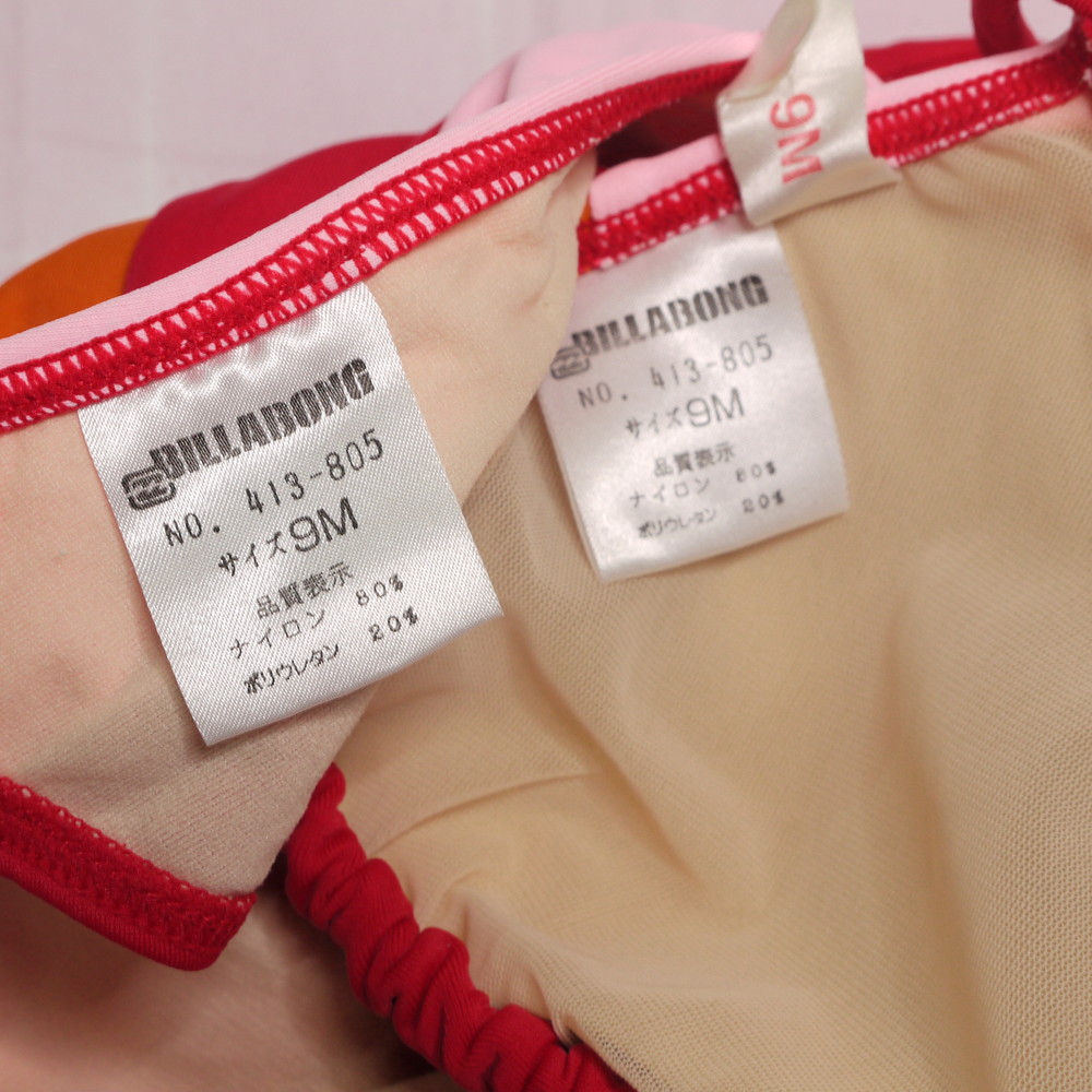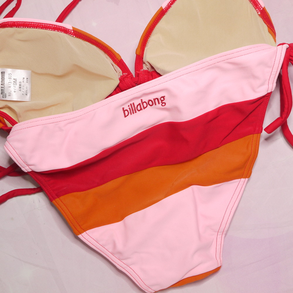 【BCランク/K43-】BILLABONG:9Mサイズ ★ レトロで可愛い夏イエロー&しましま 三角ビキニ ワイヤーなし