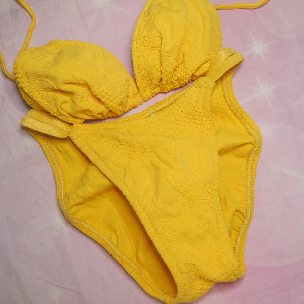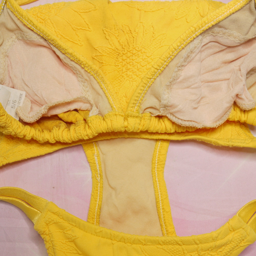 【CDランク】:5/6:L-XLサイズ程 ★ イエロー レトロ 三角ビキニ ワイヤーなし