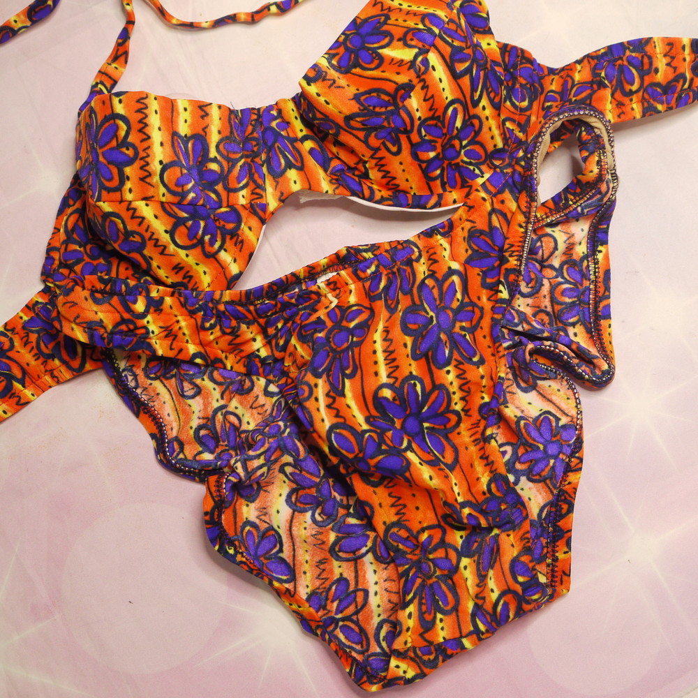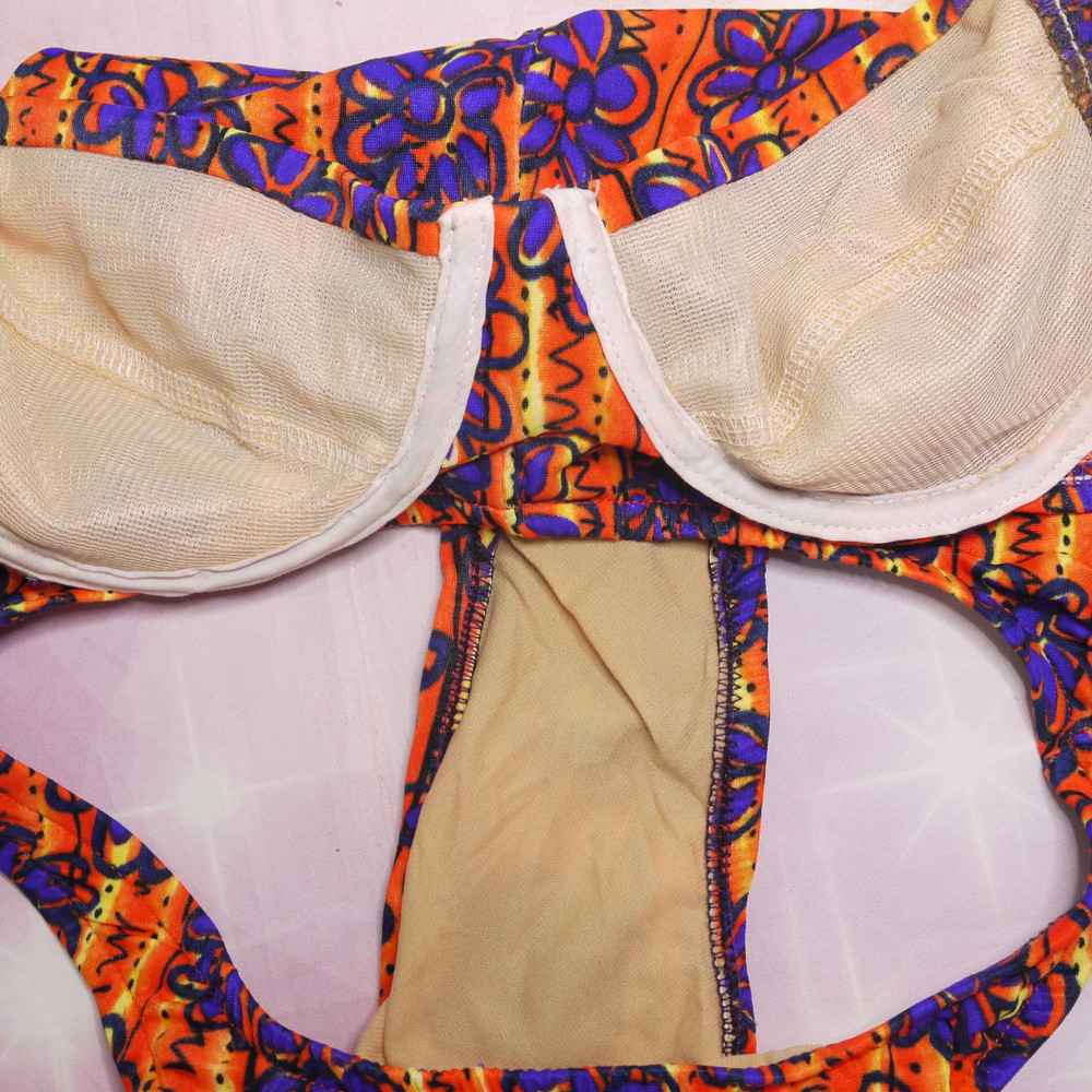 【CDランク】HOTZONE:MLサイズ程 ★ レトロで可愛いお花&オレンジ ワイヤービキニ