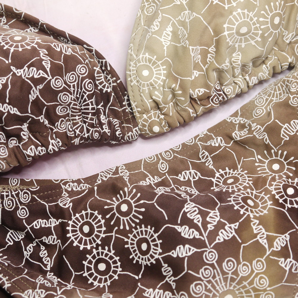 【BCランク/43-】ジャマイカンスタイル:M:MLサイズ程 ★ タイダイ風のブラウン お花? 三角ビキニ レゲエ ワイヤーなし