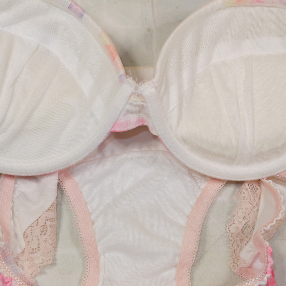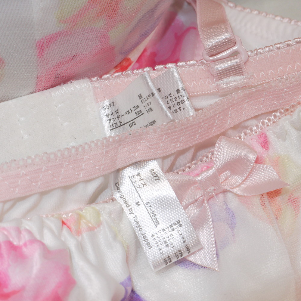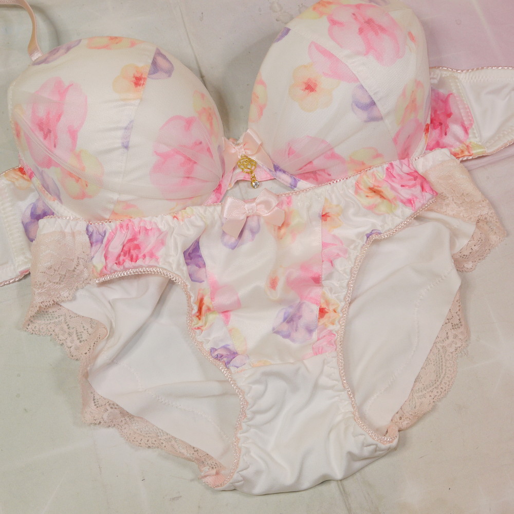 【Bランク/新古美品】サンロード:D75*93 Mサイズ ★ 超絶可愛い白&お花柄 厚盛 ティーンズJCJK系? ブリっとPBセット