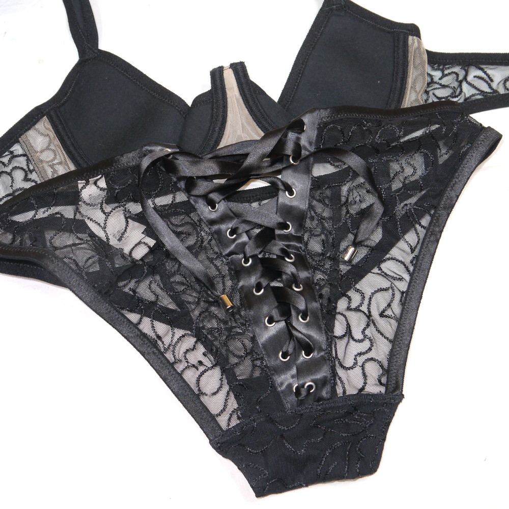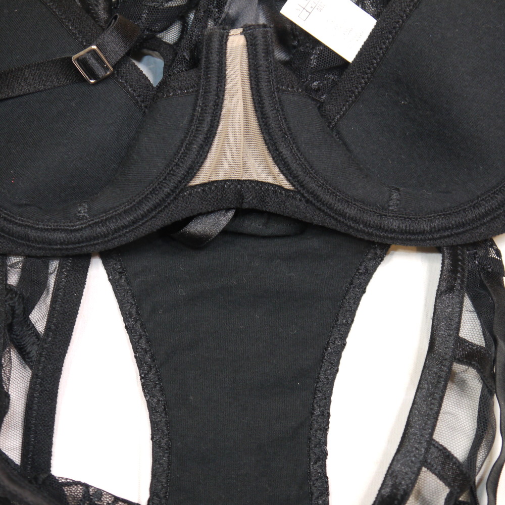 【ABランク/未使用?】Aubade:S:CDカップ程 ML程 ★ 妖艶香る黒×背部編み上げ 高級ランジェ PBセット