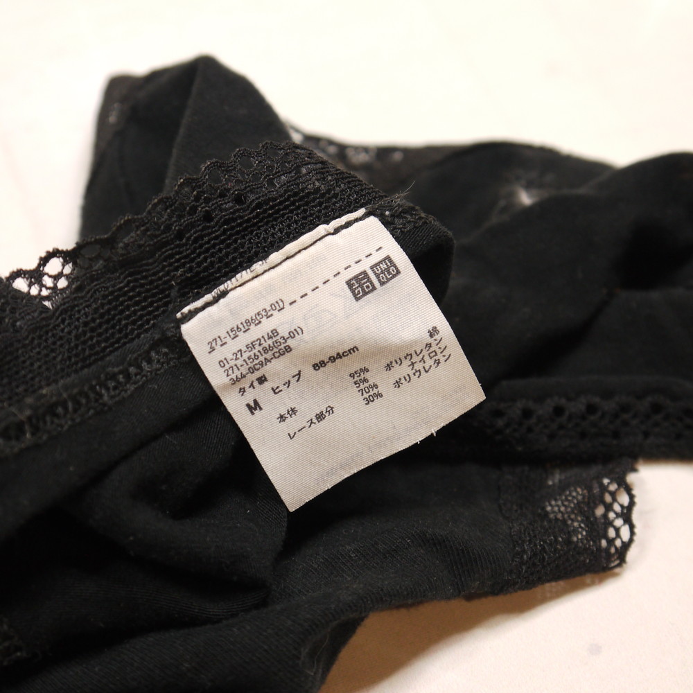 【Cランク】ユニクロ:Mサイズ ★ 大人ブラック 縁取りレース×伸縮抜群 お姉様系ローライズパンツ?