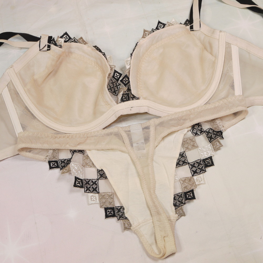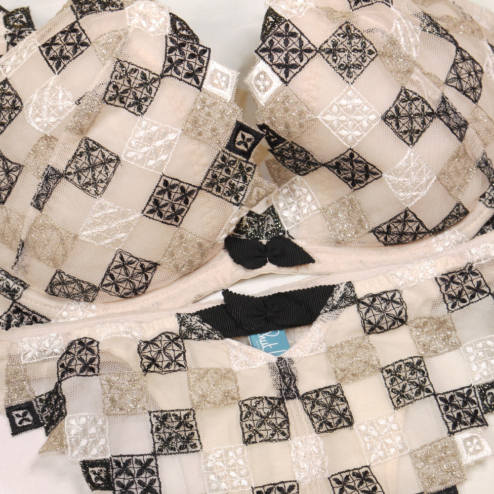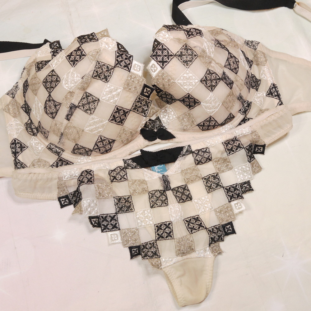 【BCランク/K43-】Chut!:H70*98 Mサイズ ★ 純粋感溢れるアイボリー×チェックレース 大人可愛いランジェ T 爆乳 PBセット