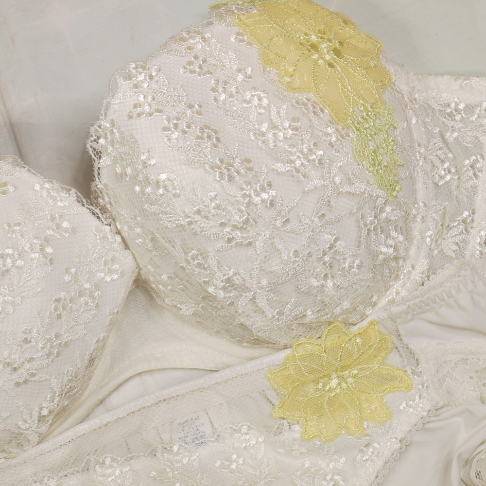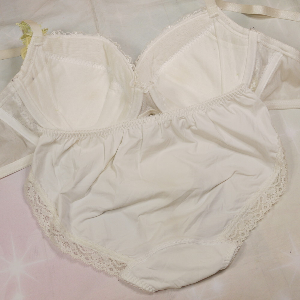 【Cランク/BK43】トリンプ:E75*95 Mサイズ ★ 清楚オフホワ×小花 むっちり巨乳デカブラ PBセット
