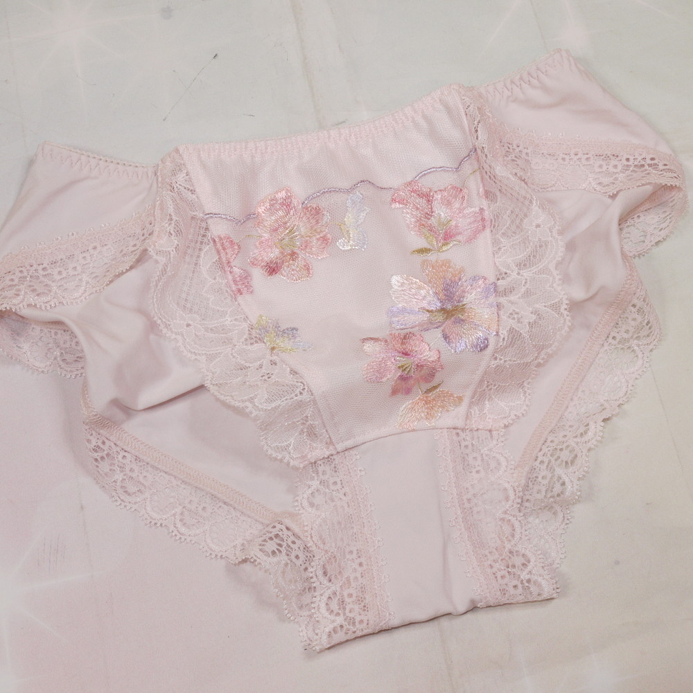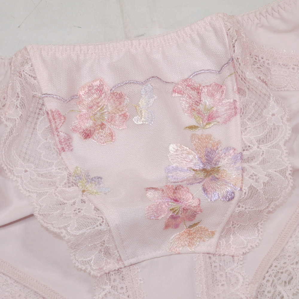 【Bランク/新古美品】ワコール:Mサイズ ★ LASEE!清楚で大人なピンク×花刺繍 艶妻・清楚妻系ショーツ