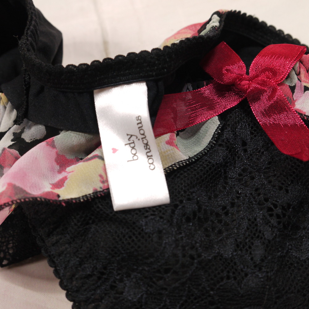 【Bランク/新古美品】ワコール:Mサイズ ★ body conscious!ロリっと可愛い黒×お花フリル JCJK系? パンティ