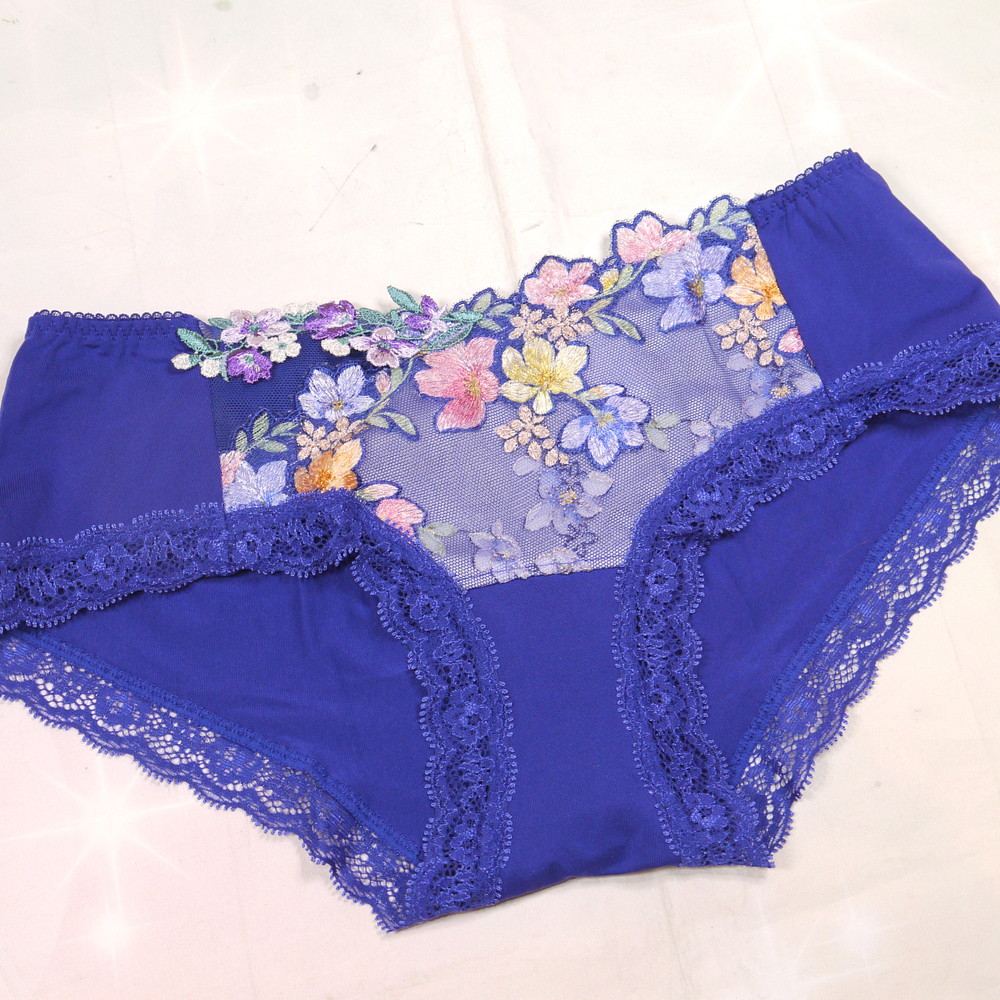 【BCランク/K43-】ワコール:Mサイズ ★ Lge!パキッとブルーに華やか花刺繍 艶妻系ショーツ