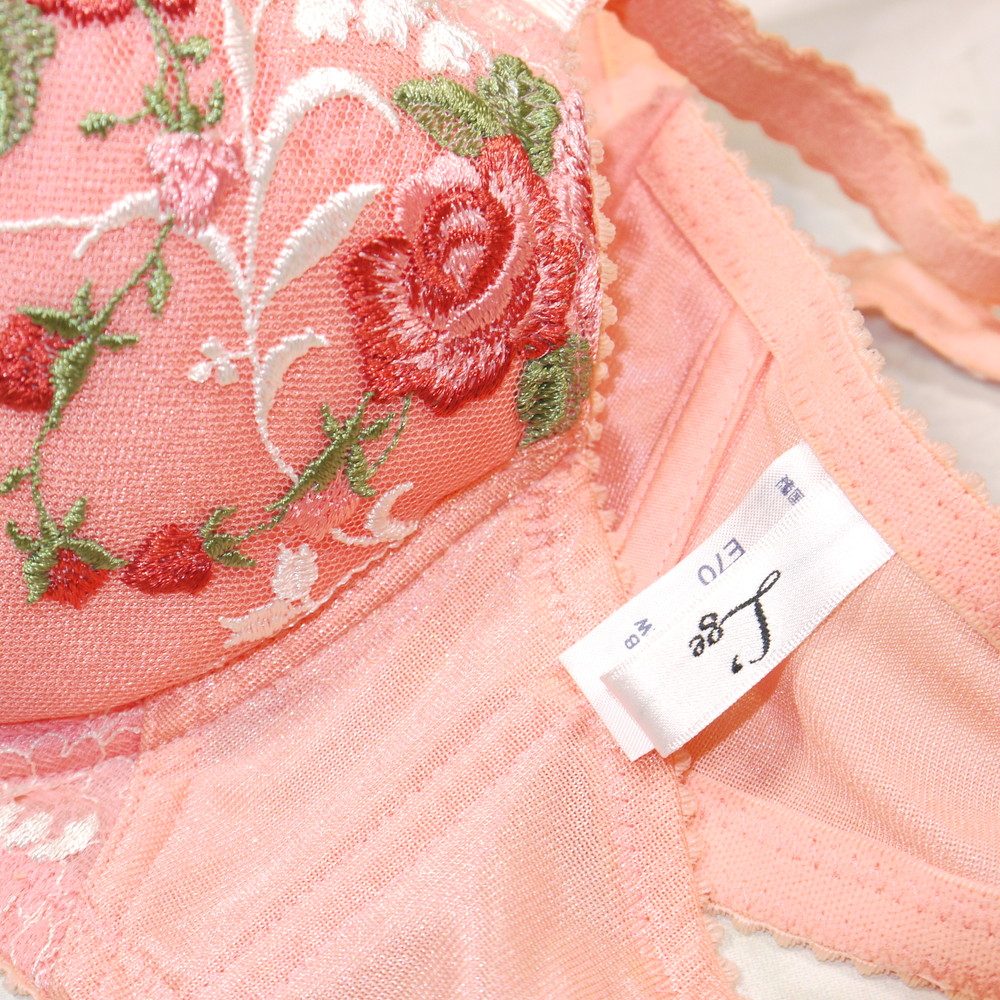 【Bランク/新古美品】ワコール:E70*90 ★ Lge!大人可愛いサーモン×薔薇 デカブラ